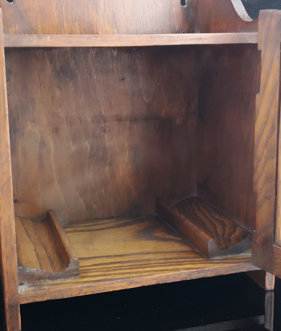 Very well made, cut from single pieces of nicely grained oak with a dark finish.