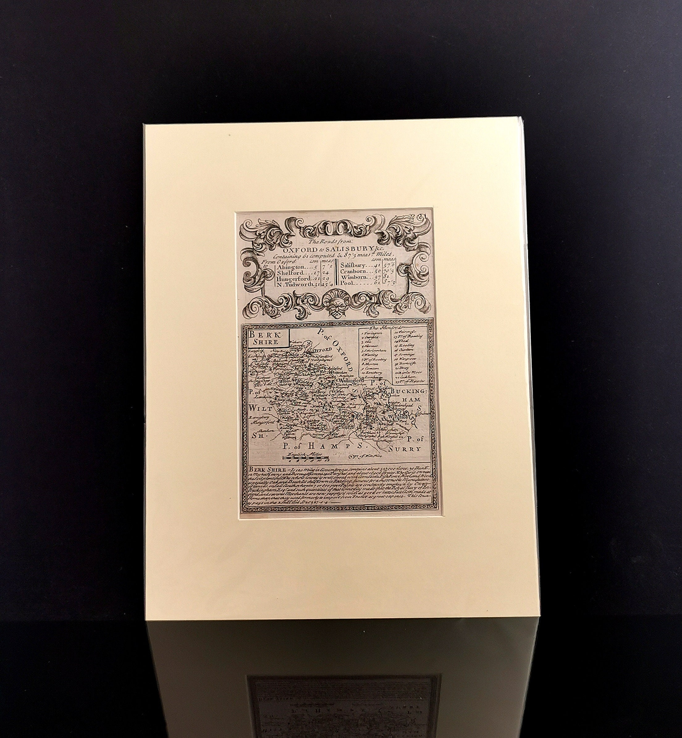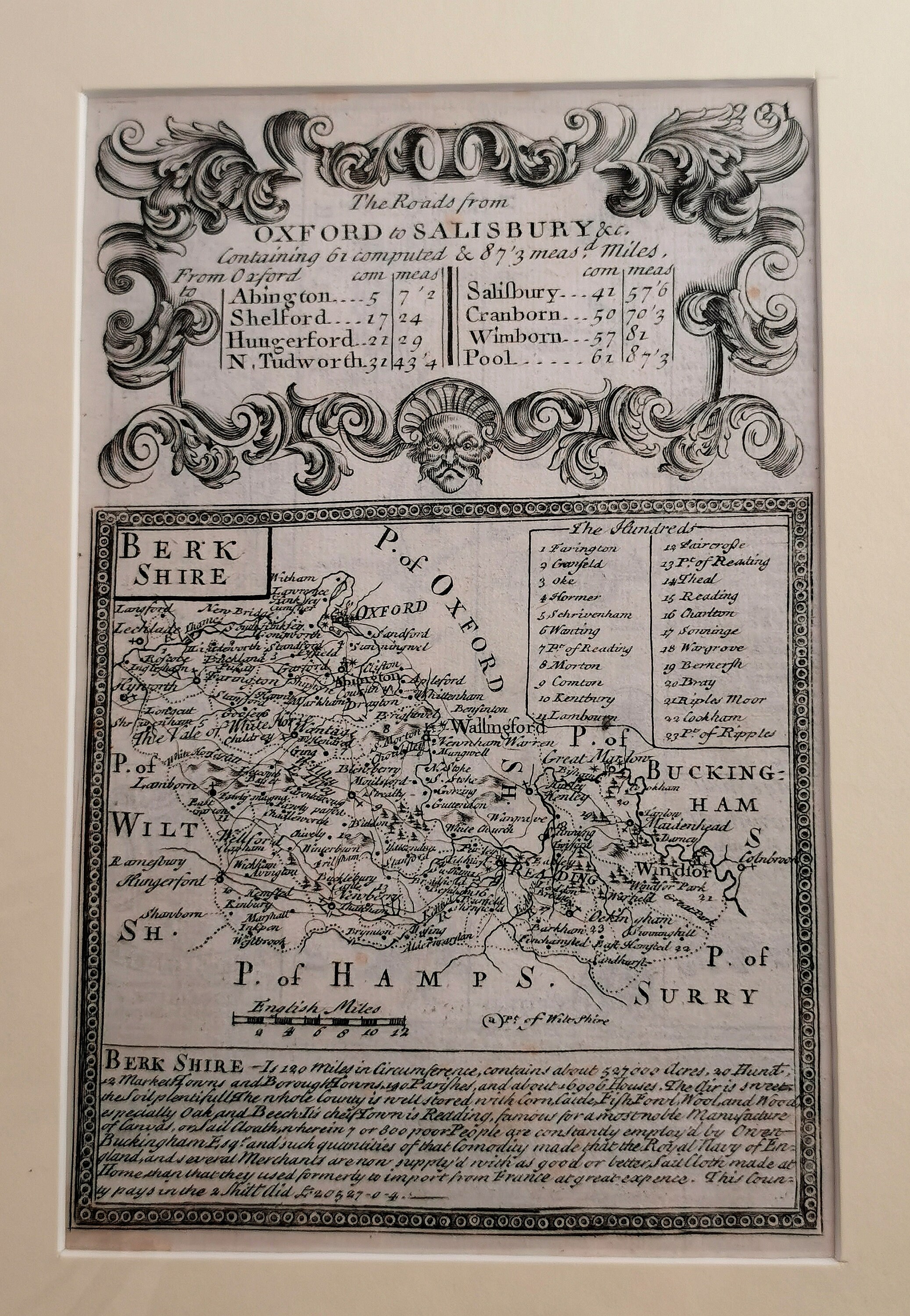 The print features a map of the Roads from Oxford to Salisbury in an 18th century style.
