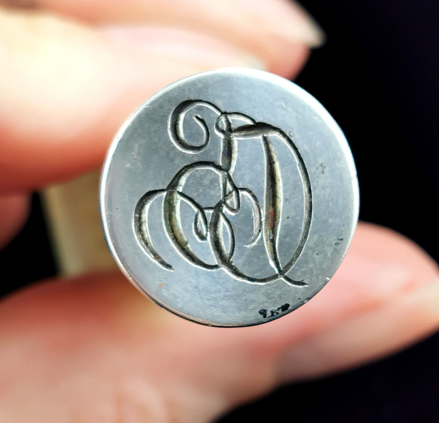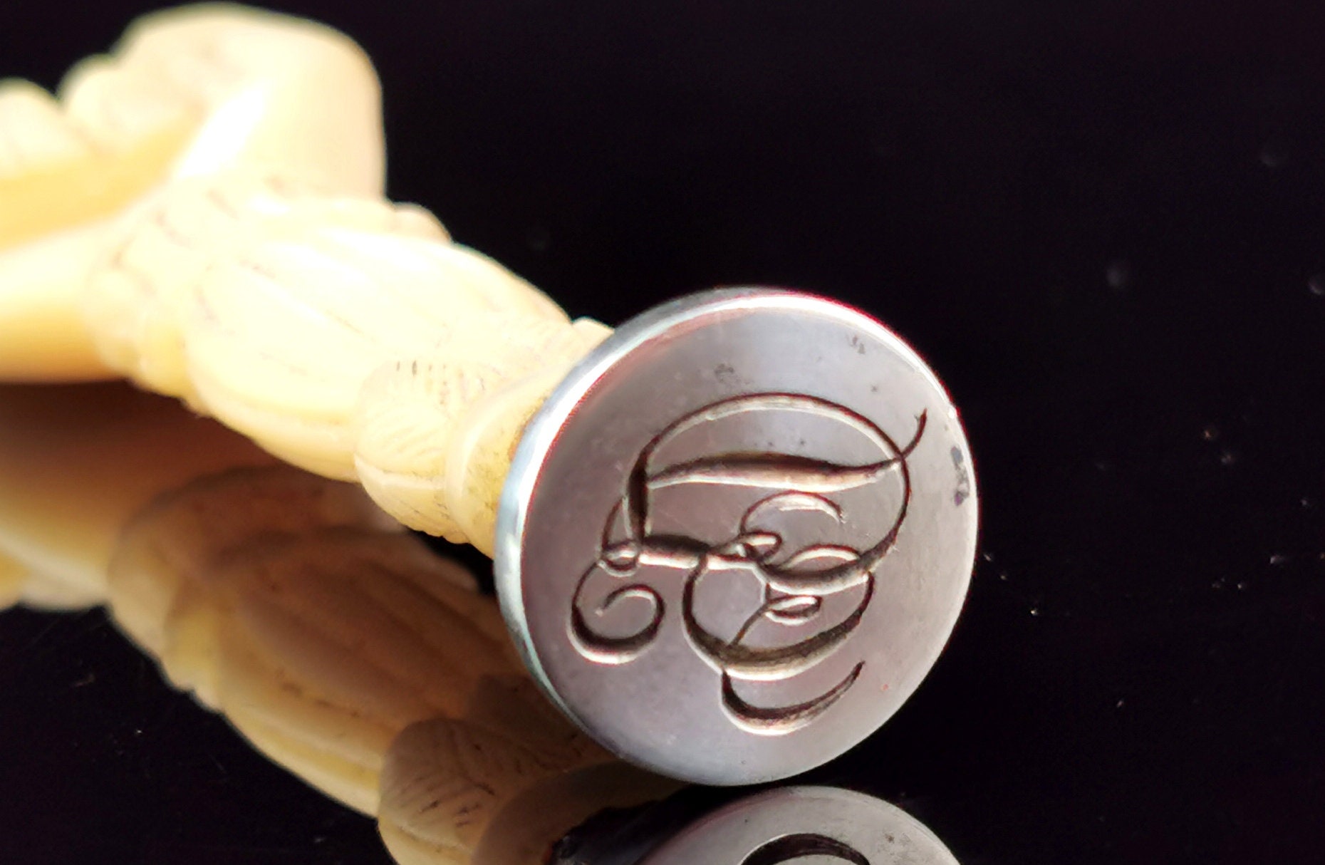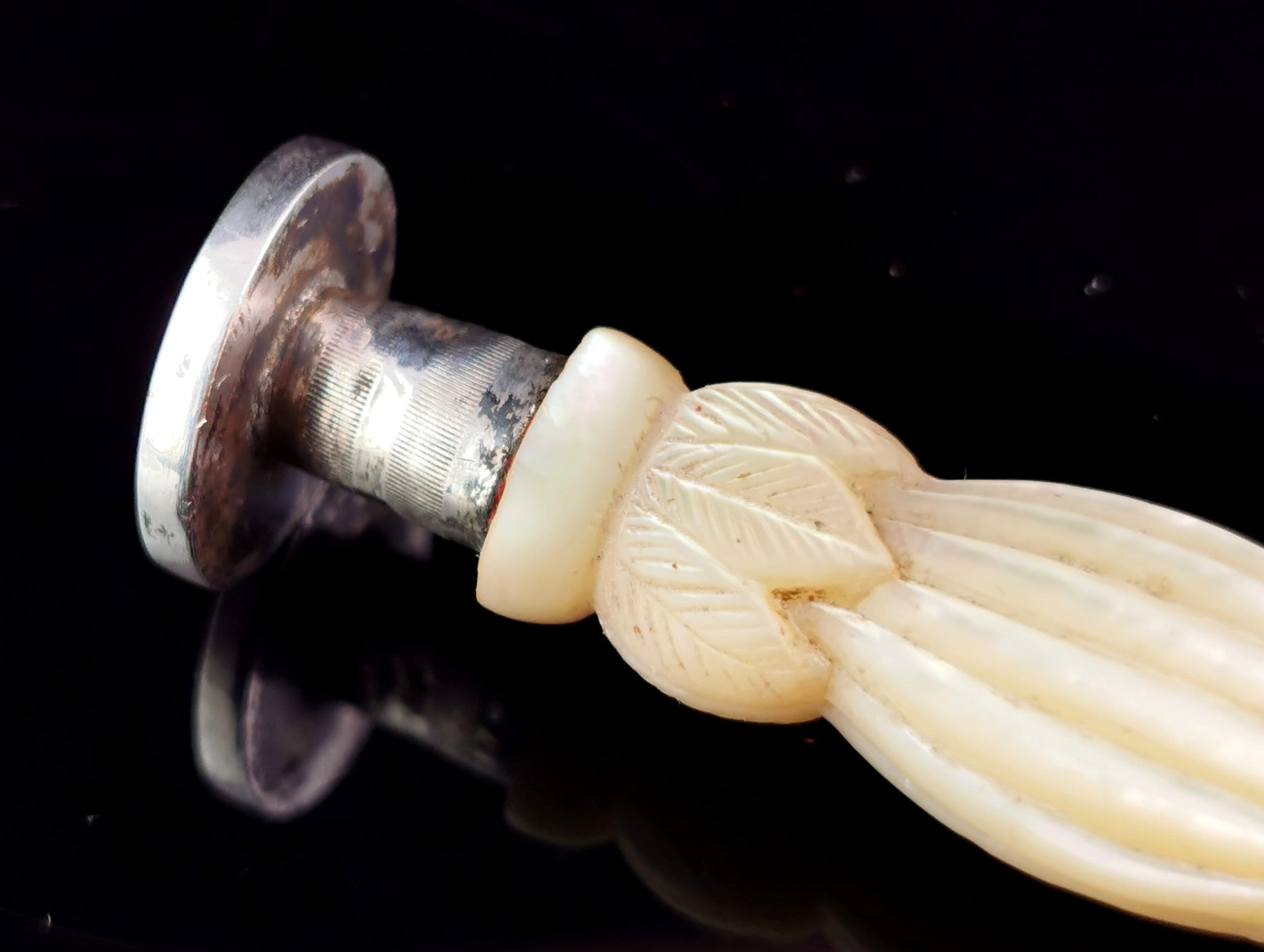 A handsome and well sculpted antique, mid-Victorian era mother of pearl desk seal.