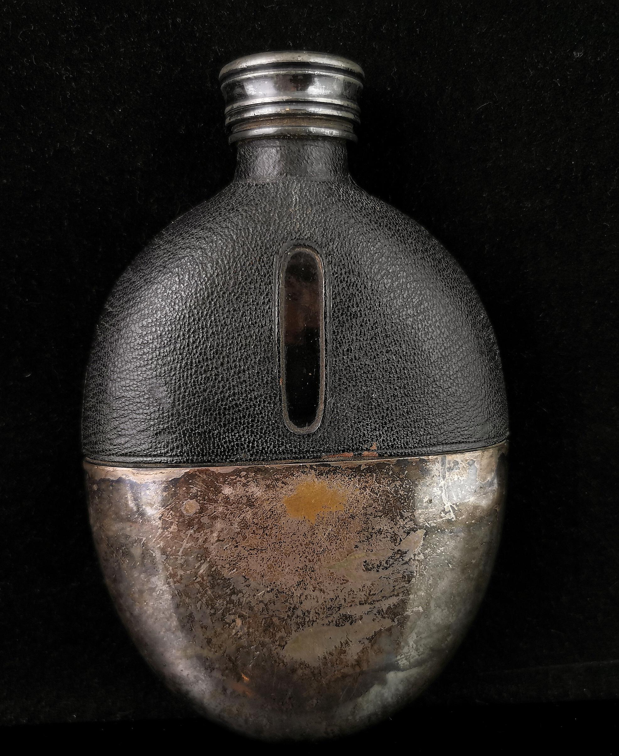 A handsome rustic and distressed antique flask, it is a good size and well made despite having some wear.