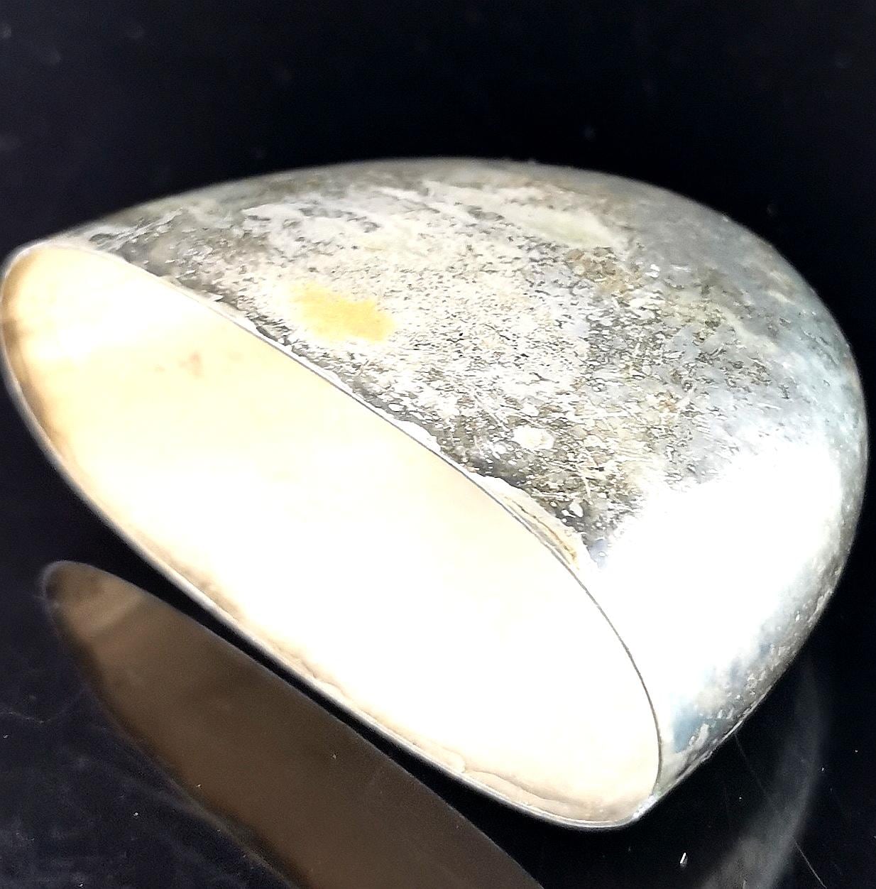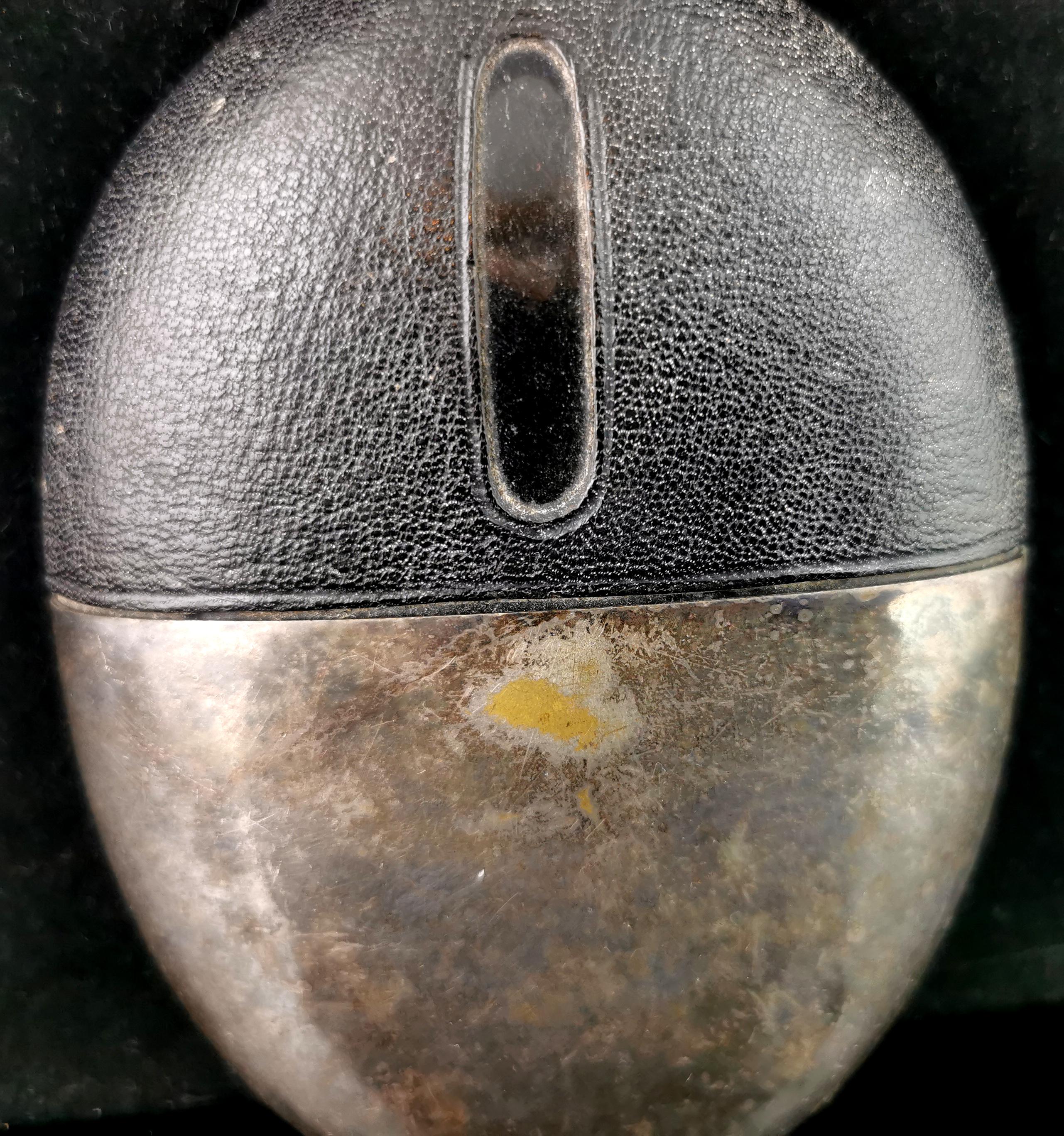 Fair used condition overall, lots of surface wear and scratches, some wear to the leather, tarnish to the metal with lots of dark patina and some brass showing through.