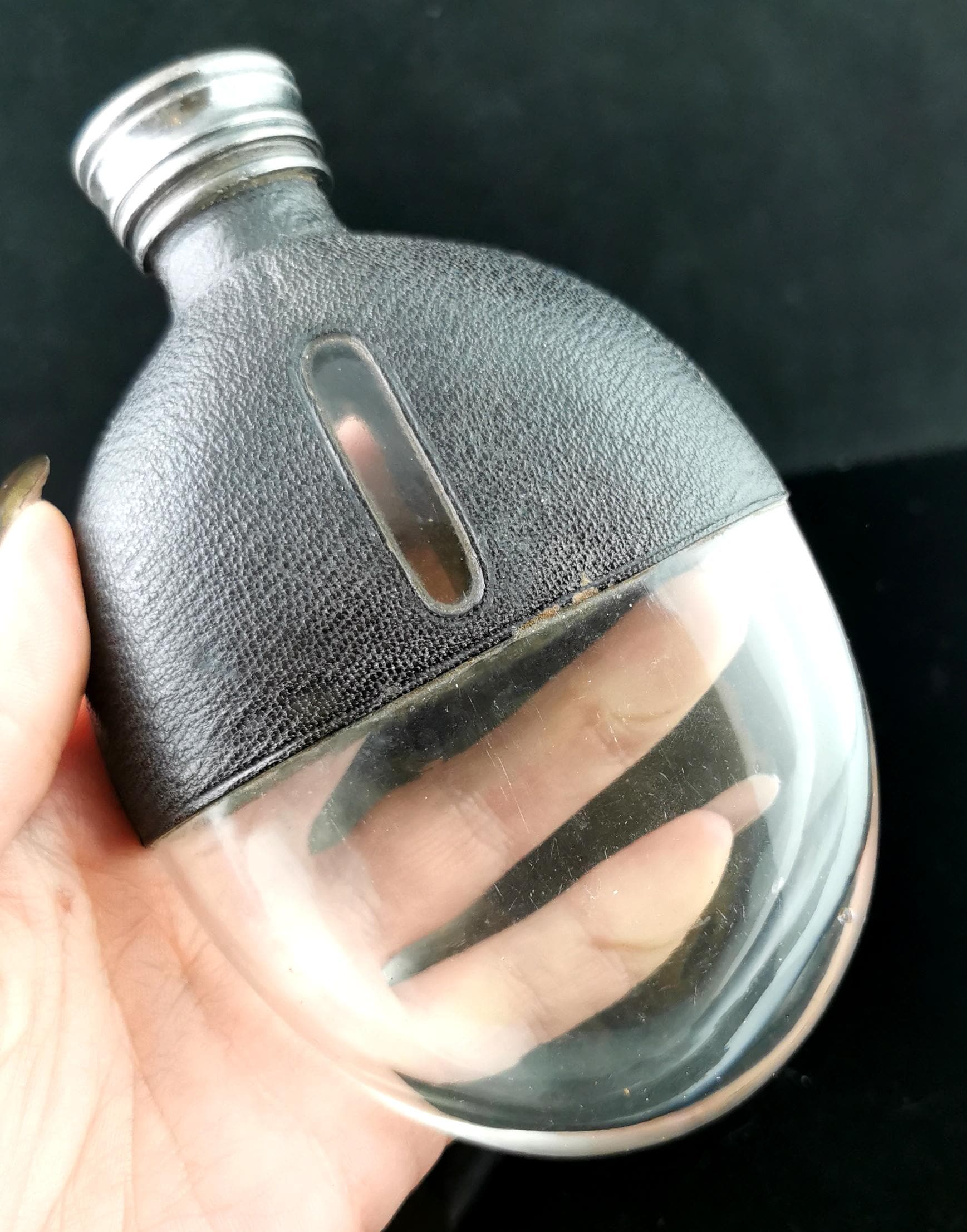 It has a brown leather half cover to the top and a screw top cap to the glass flask.