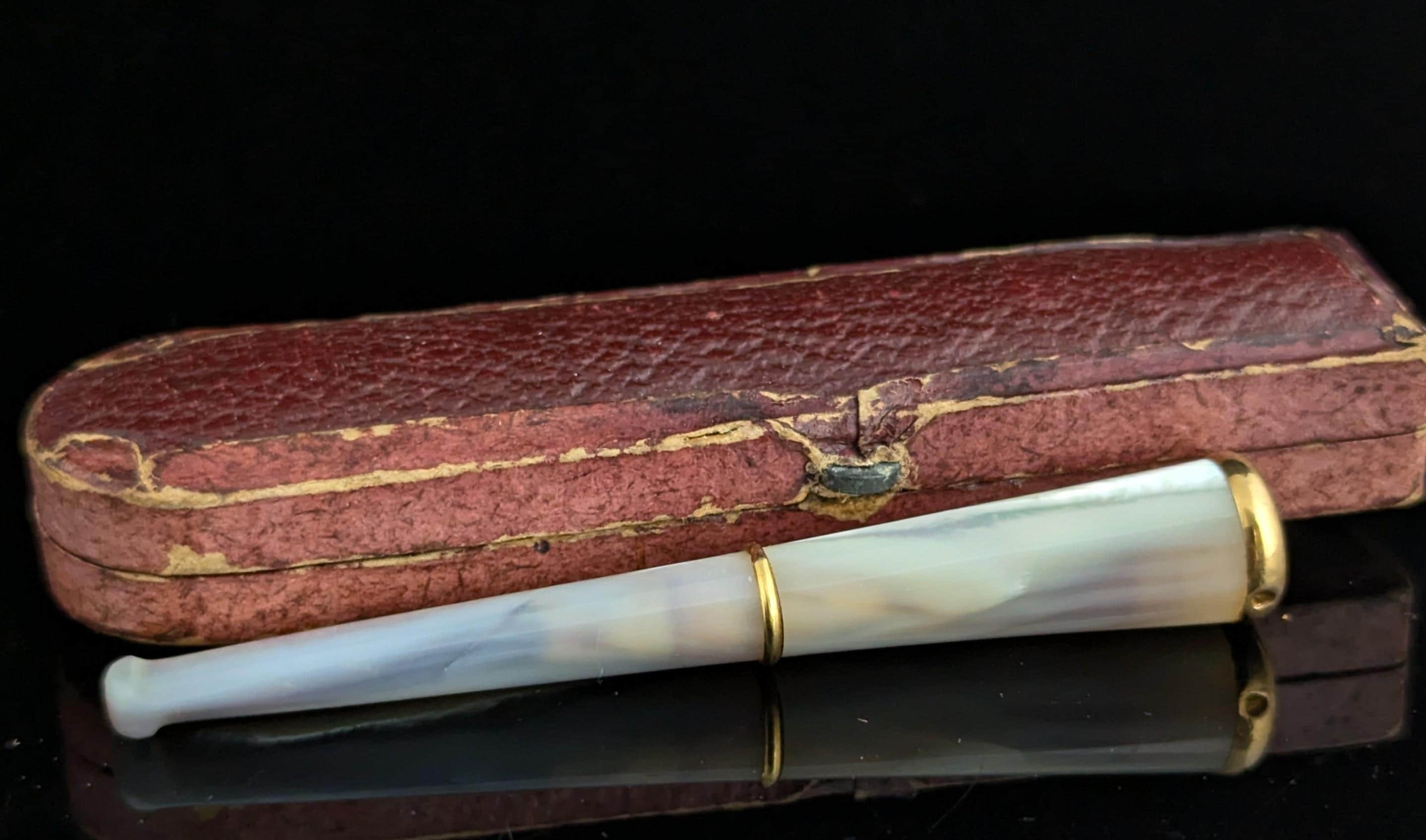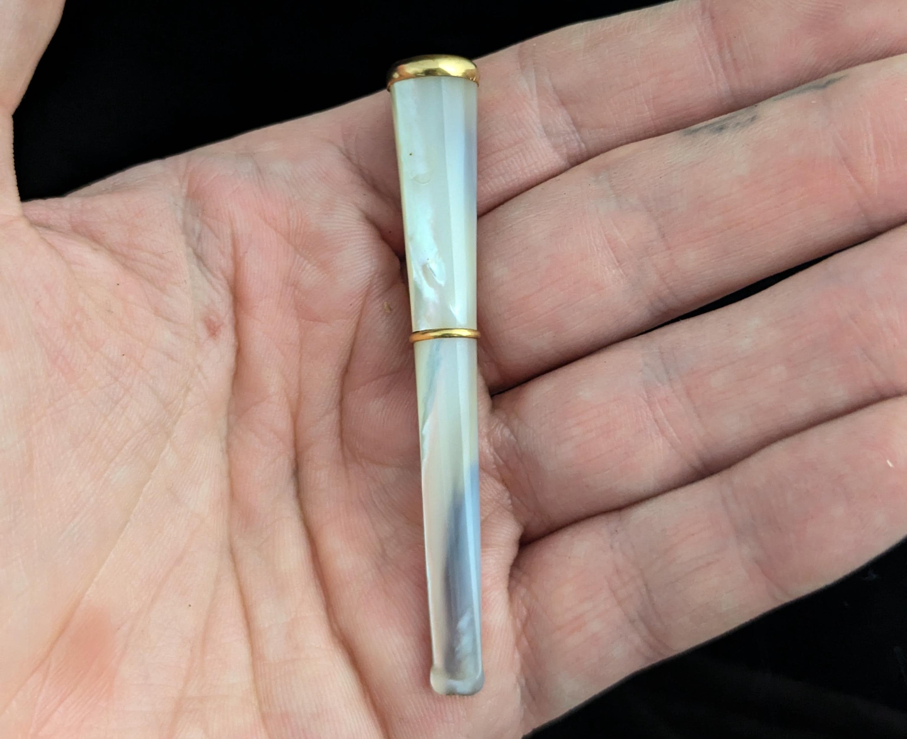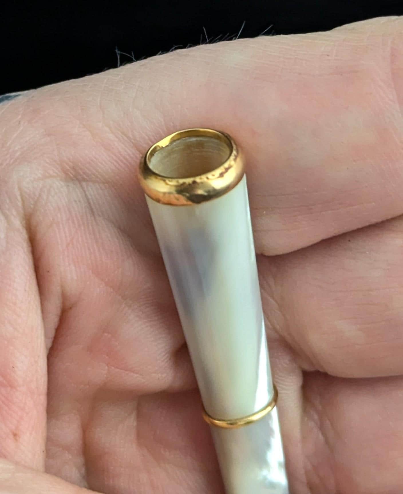 This mother of pearl and 9ct yellow gold collared cheroot holder is the epitome of Art Deco style and class.