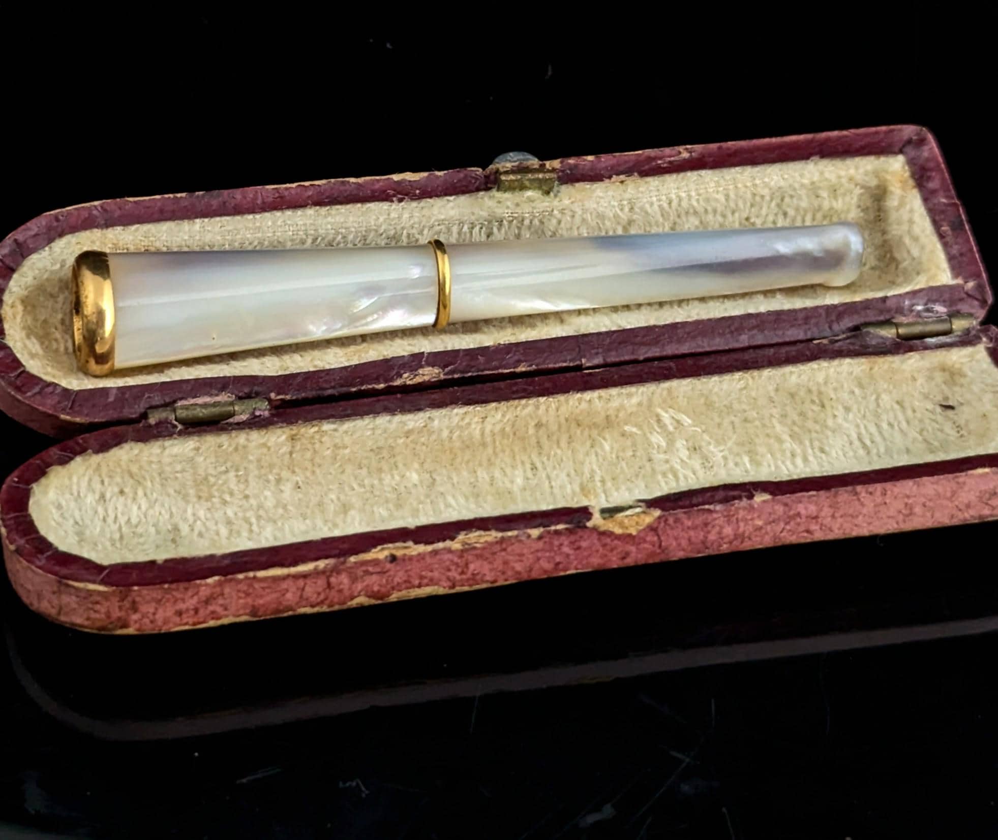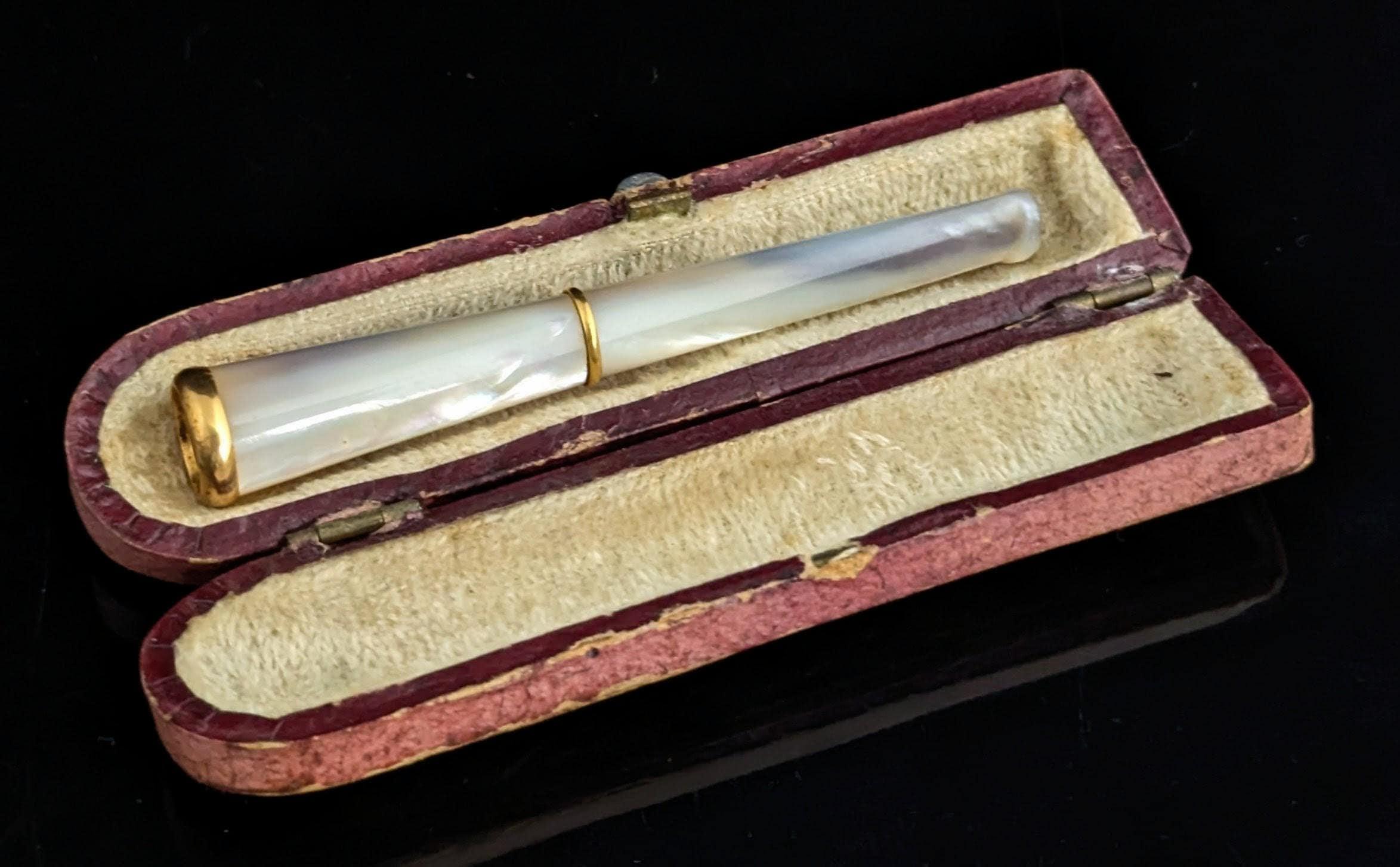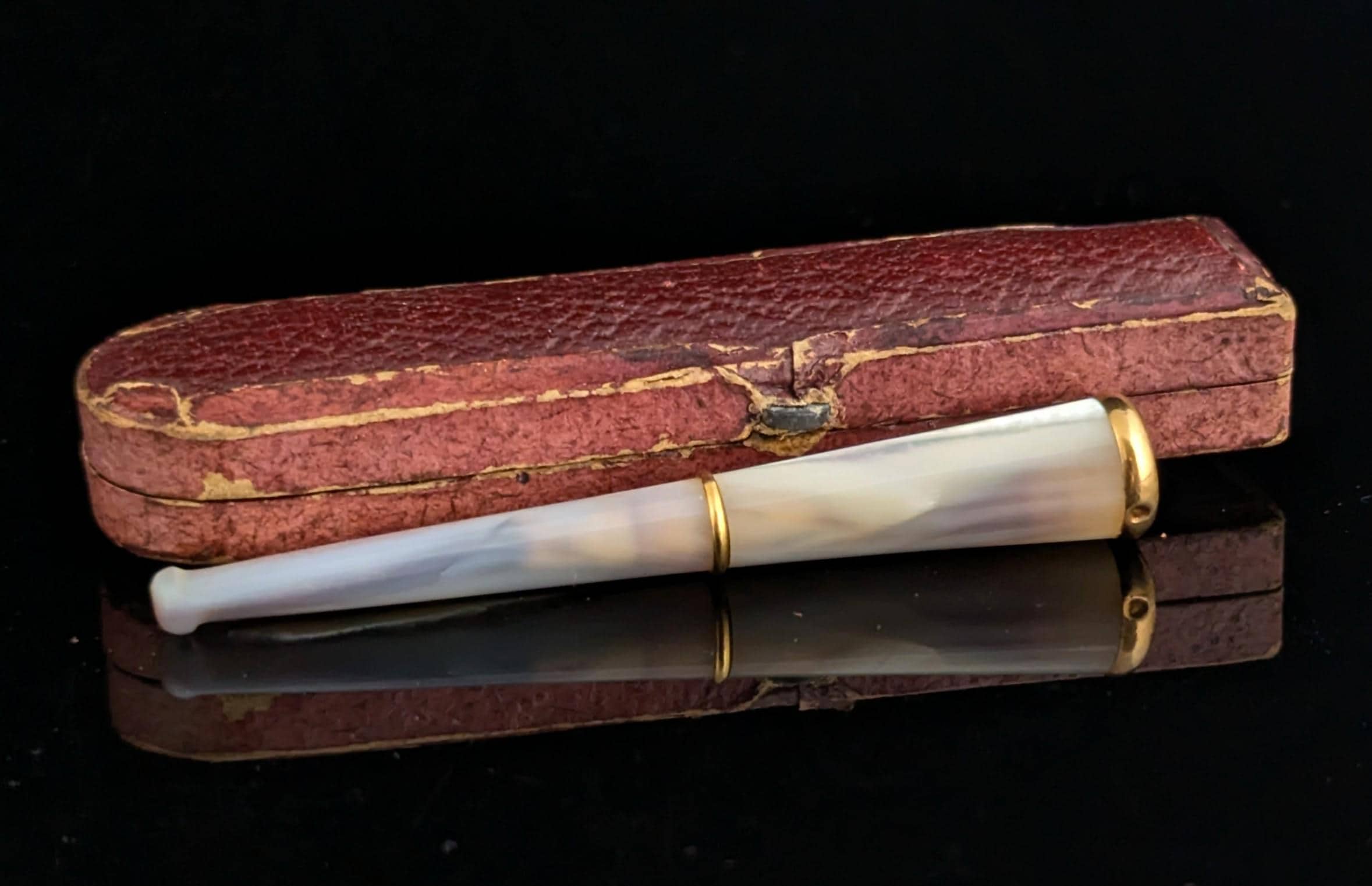 This mother of pearl and 9ct yellow gold collared cheroot holder is the epitome of Art Deco style and class.