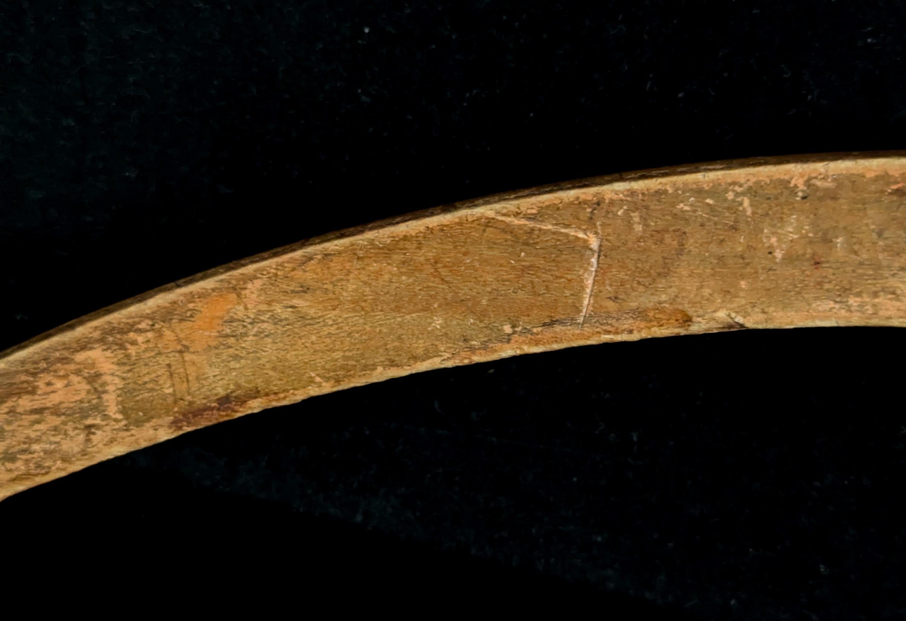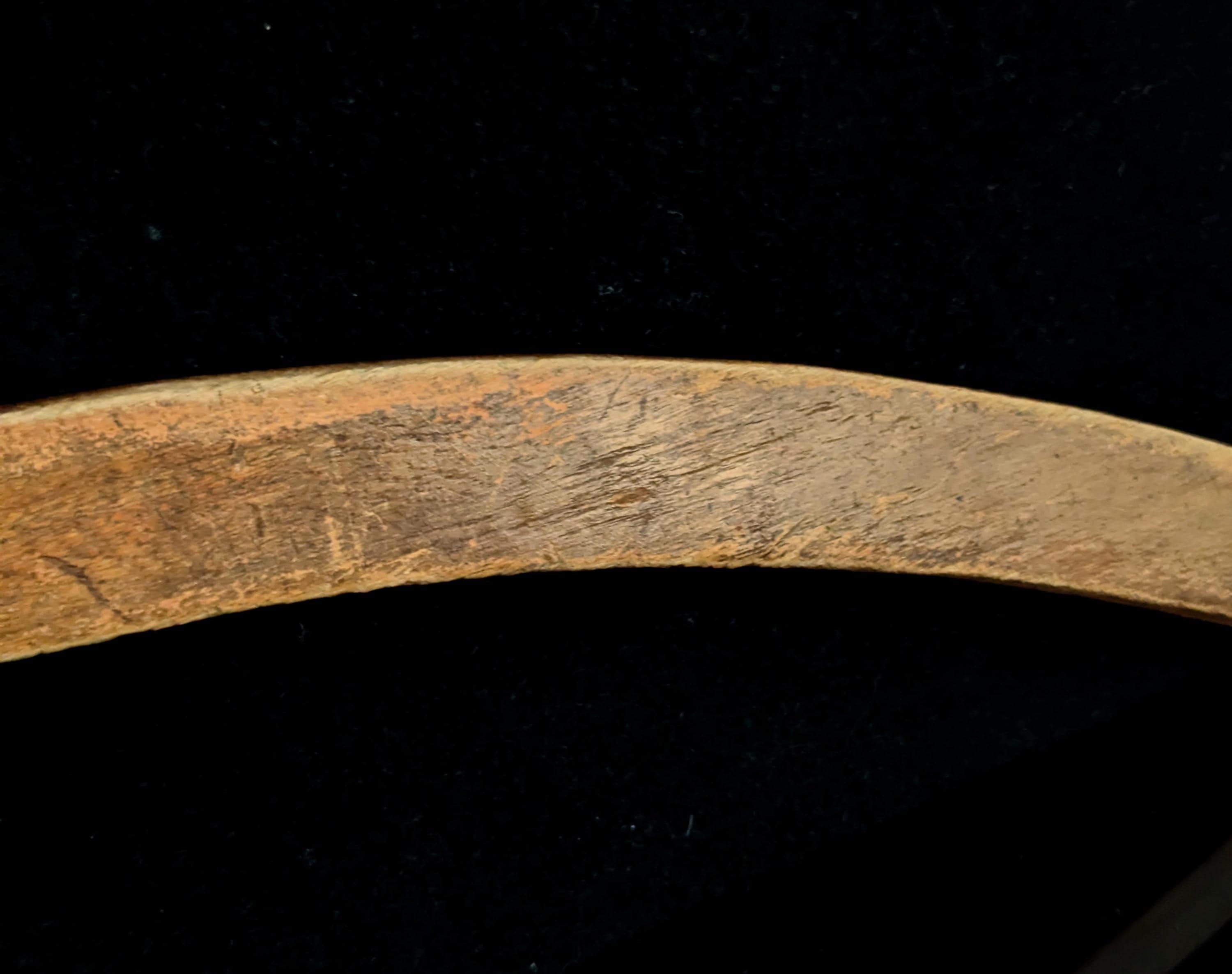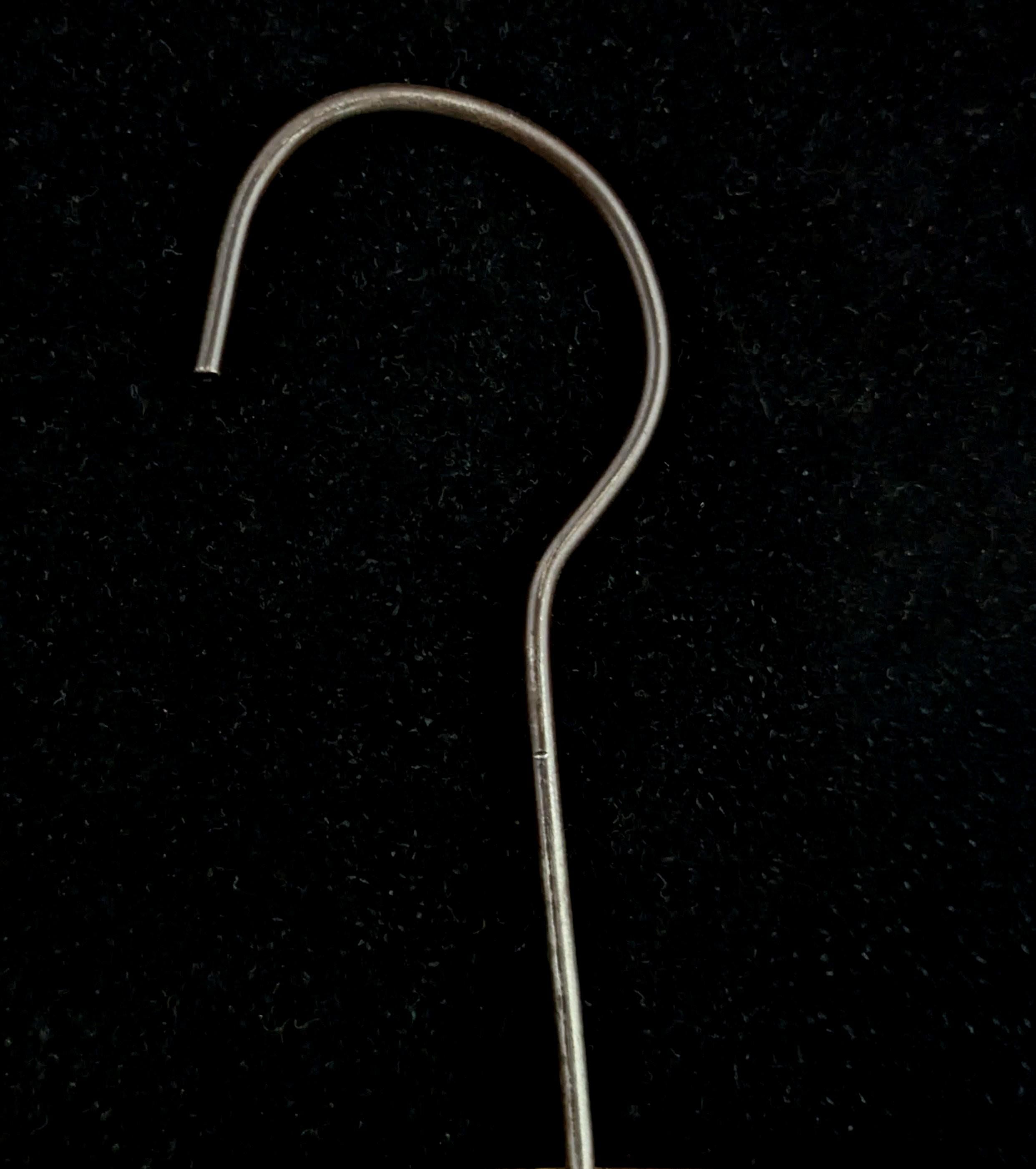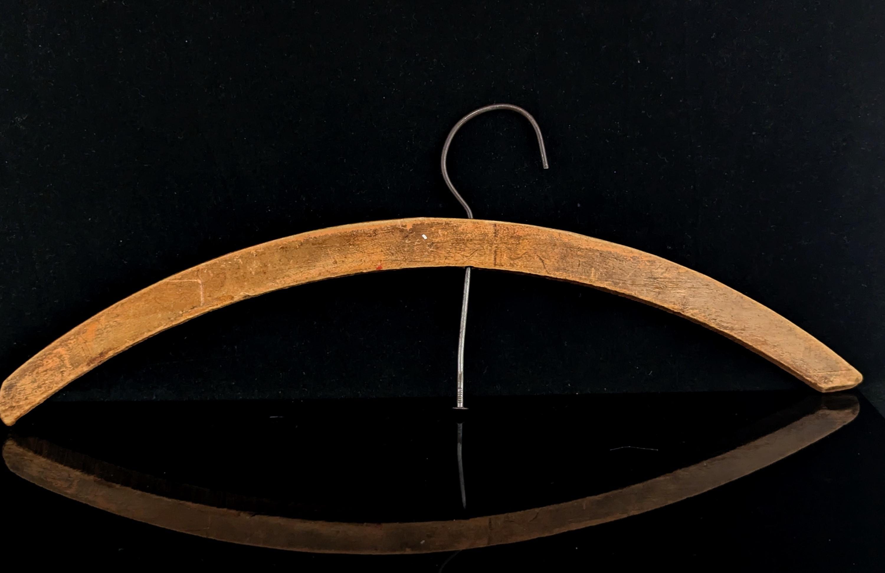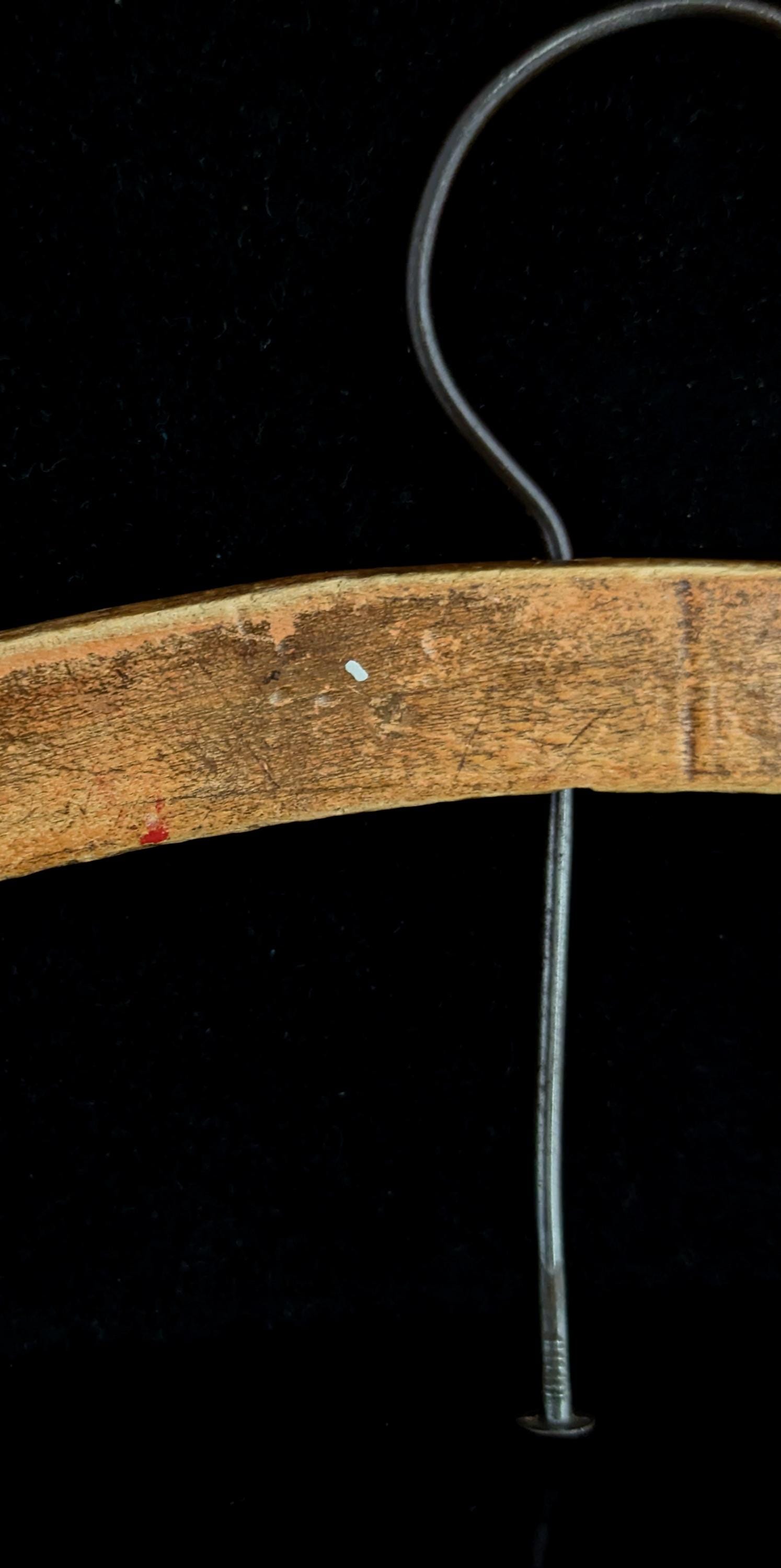 Good condition overall, some age commensurate surface wear, some wear and marks to the wood and some marks, metal hook with previous bends but works well.