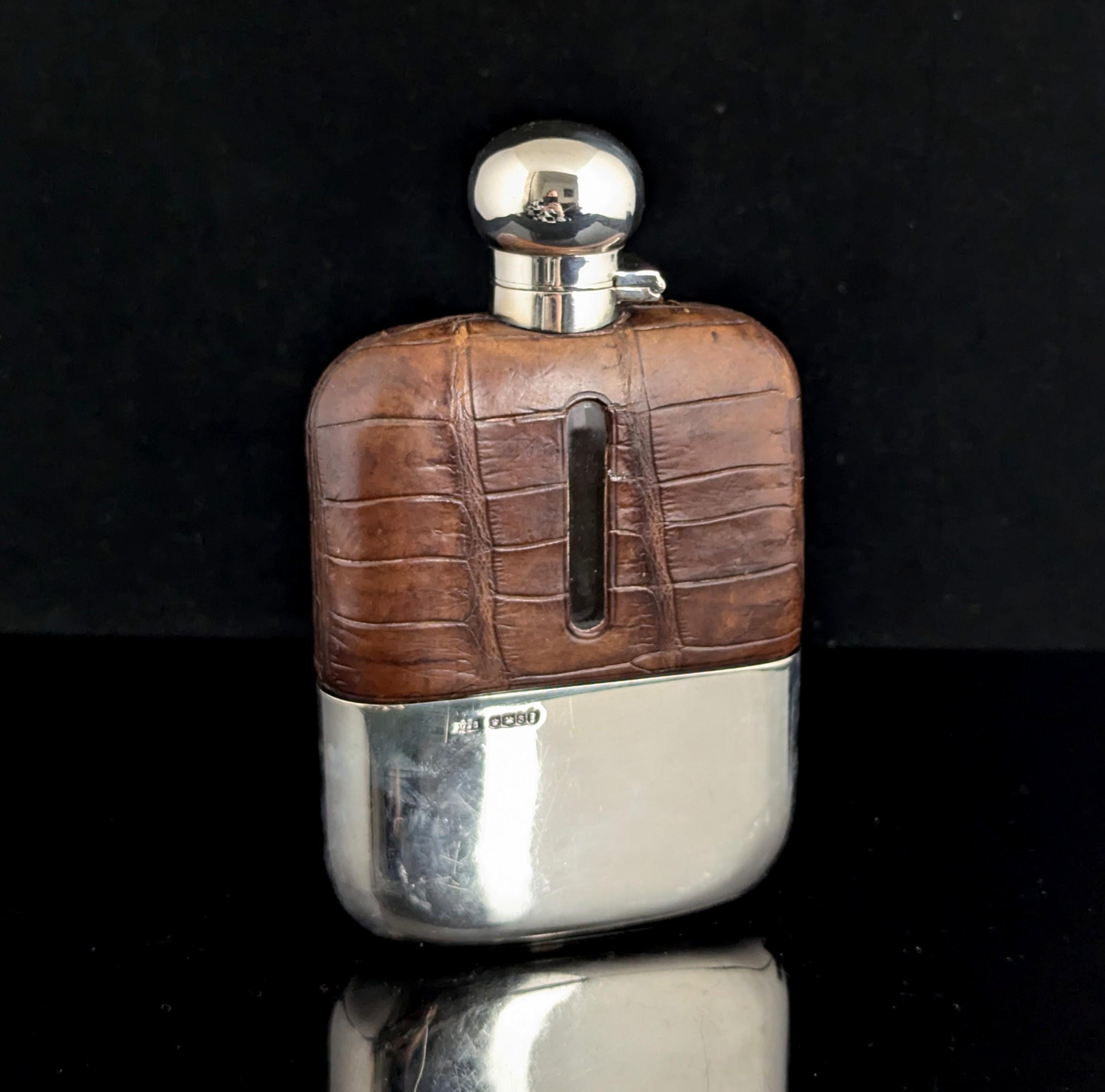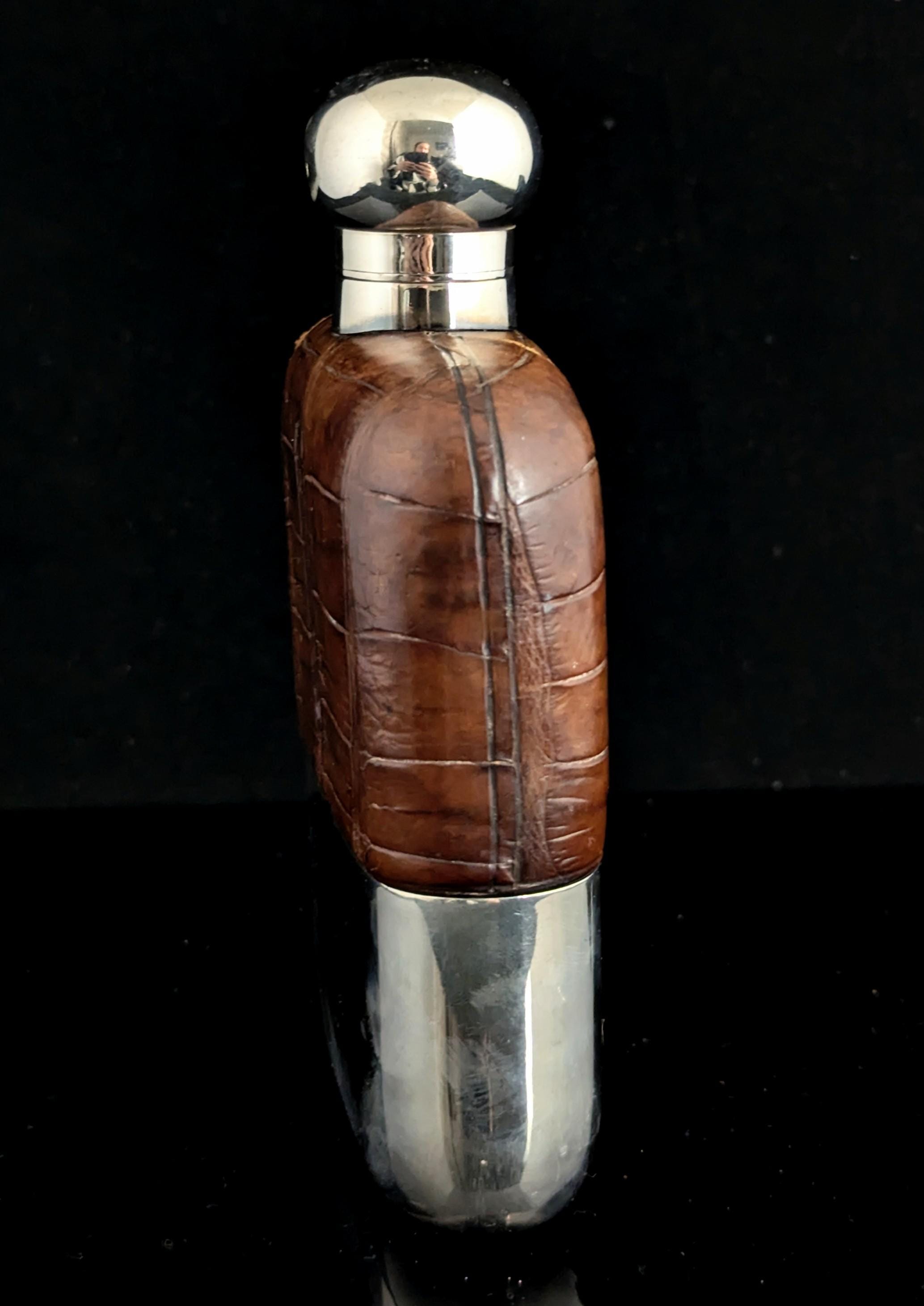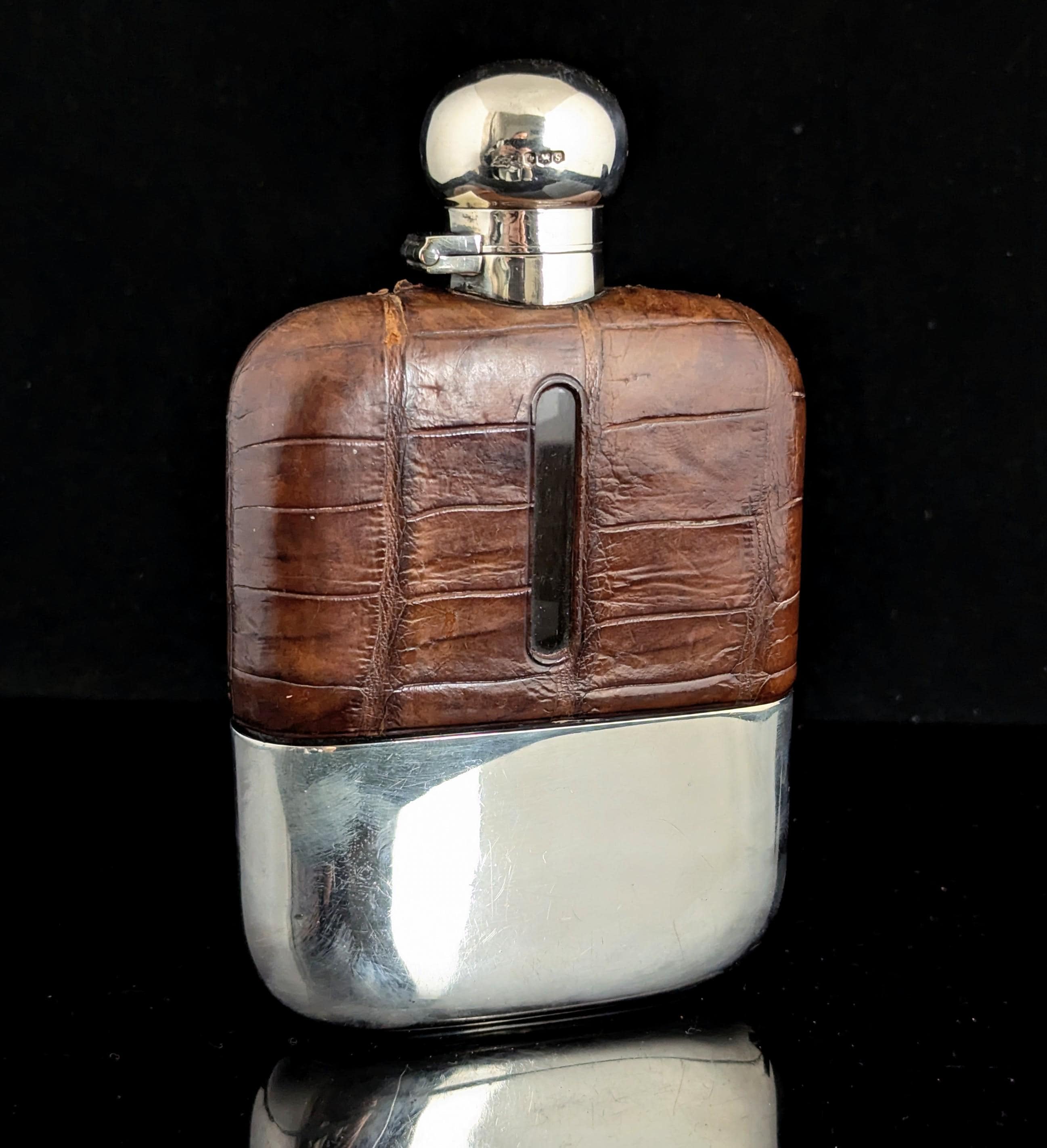 A handsome vintage Art Deco era, sterling silver, leather covered hip flask.