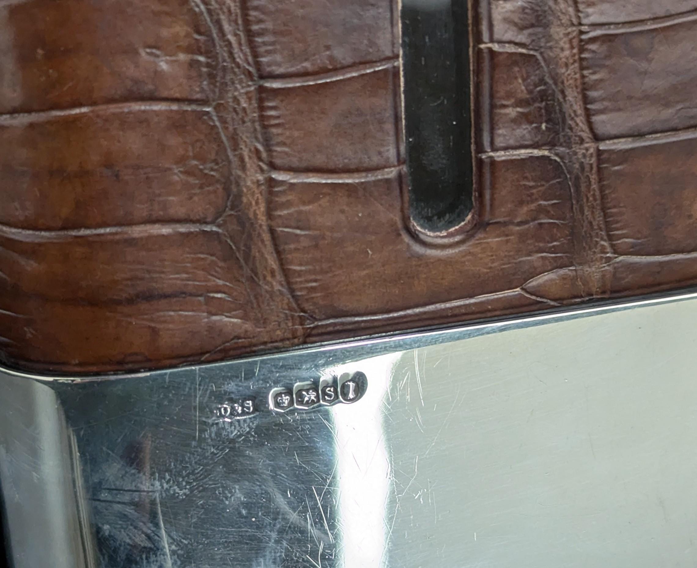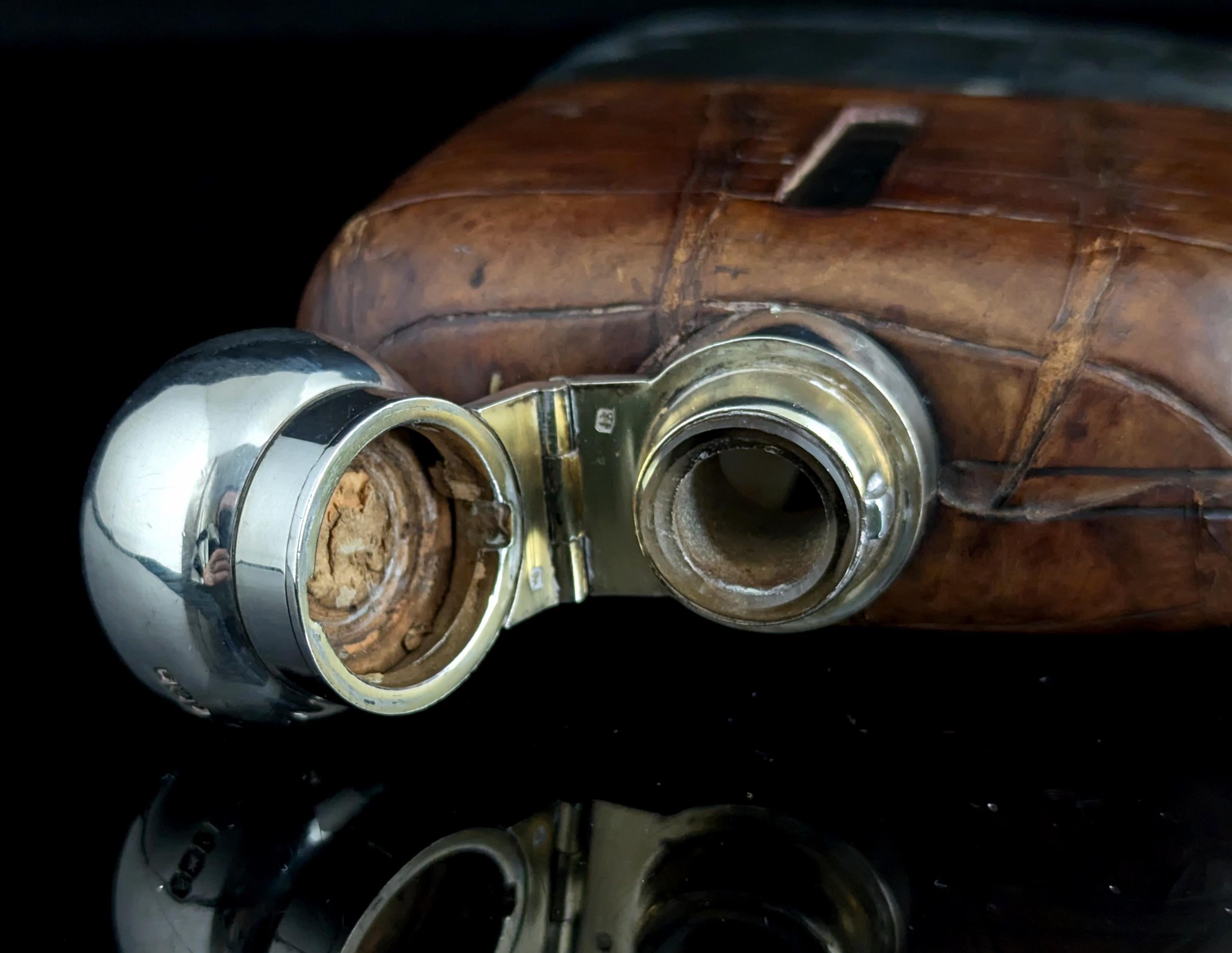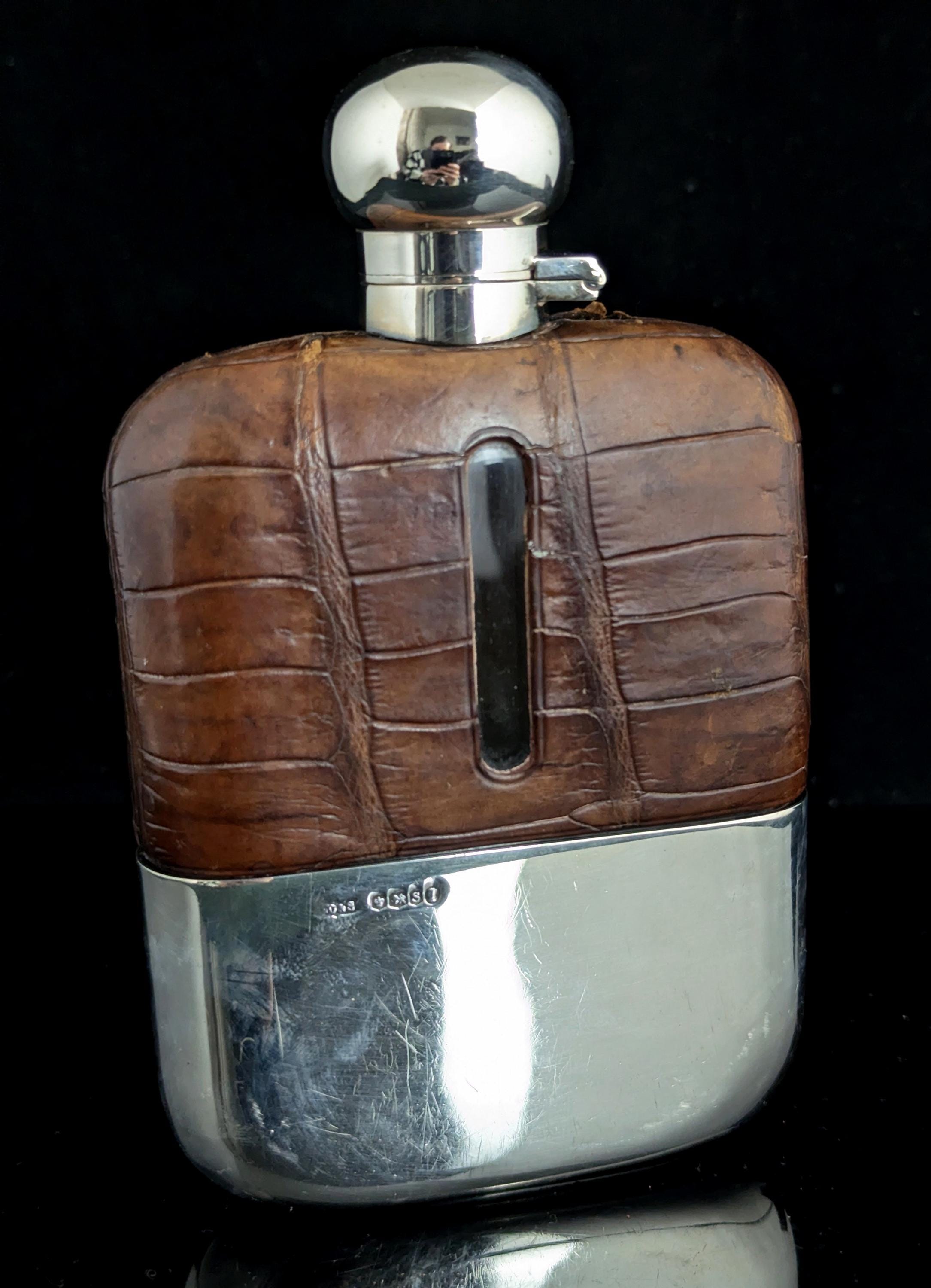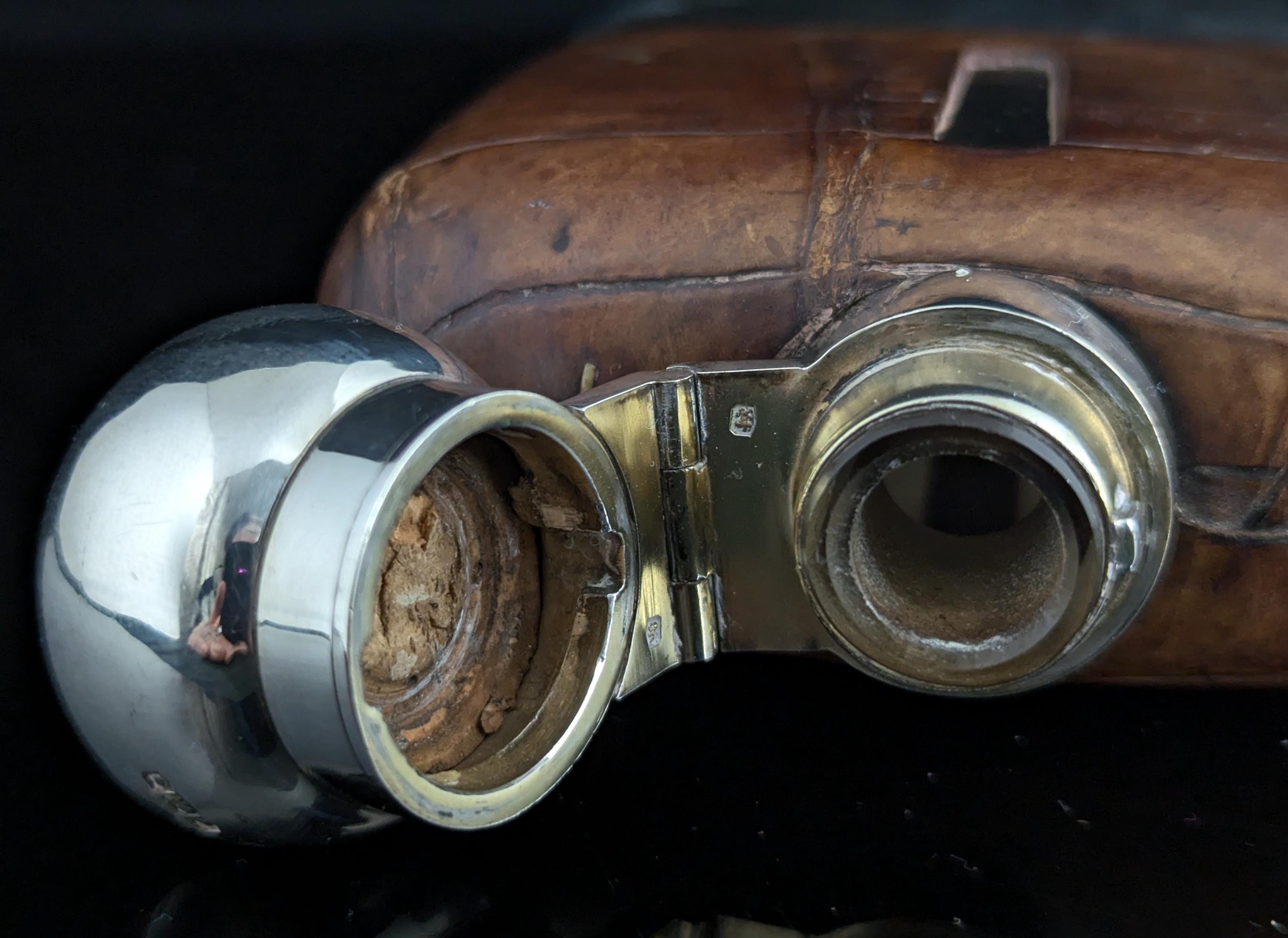 A handsome vintage Art Deco era, sterling silver, leather covered hip flask.