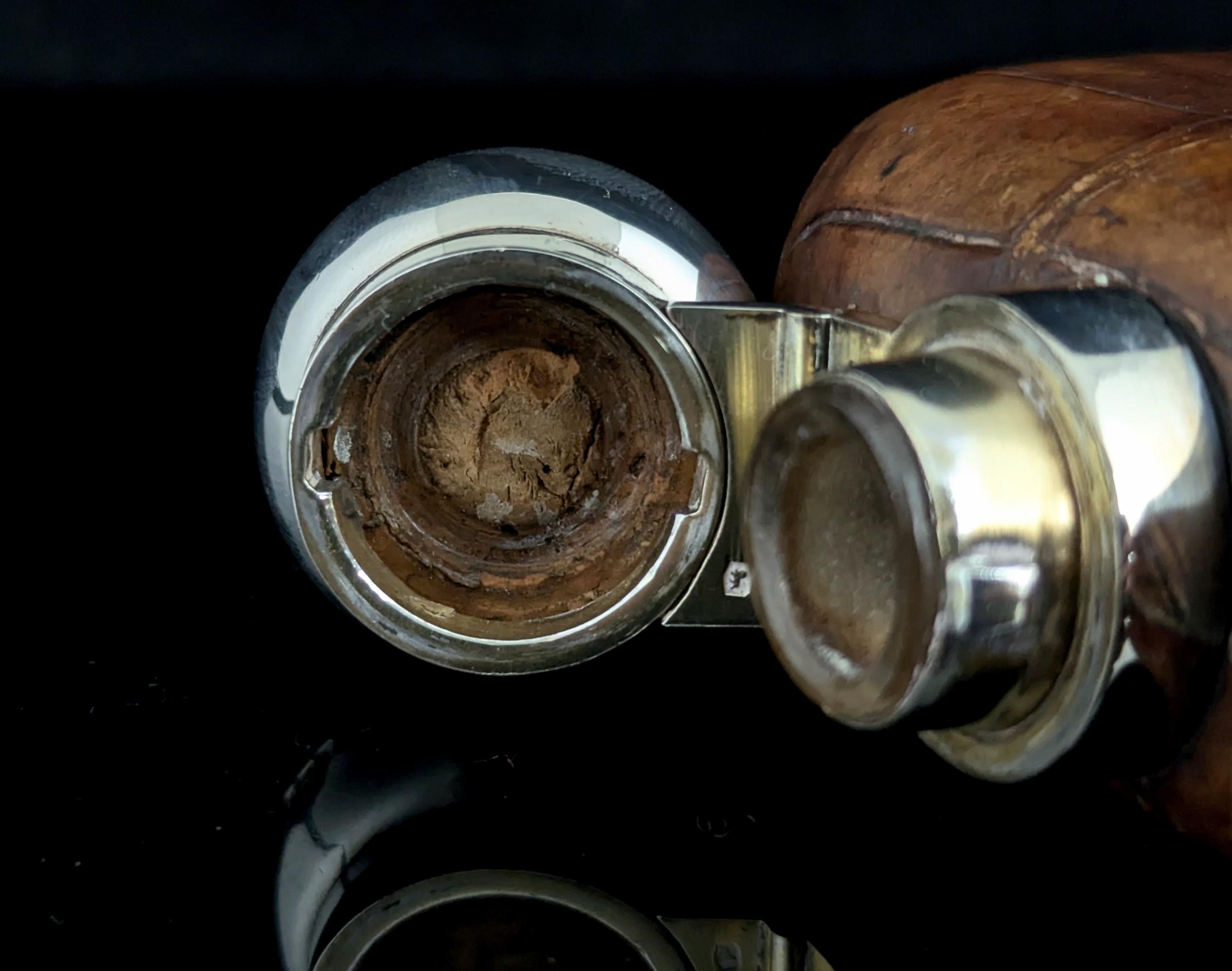 It has a sleek sterling silver beaker base, this can be removed to be used as a beaker and still has some much of the original gilt lining.