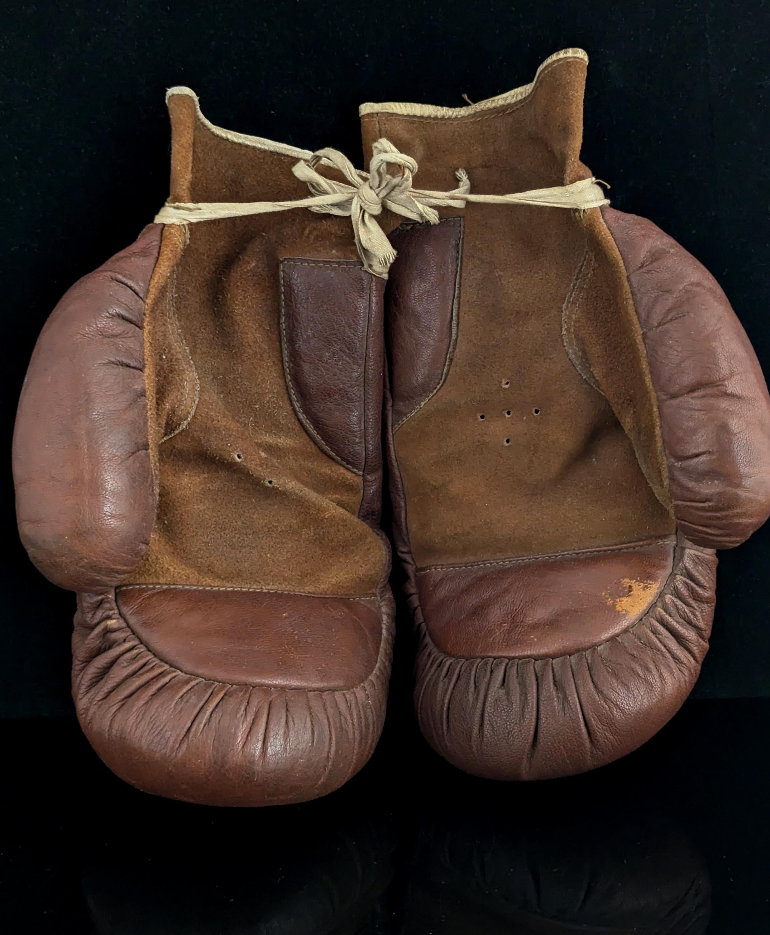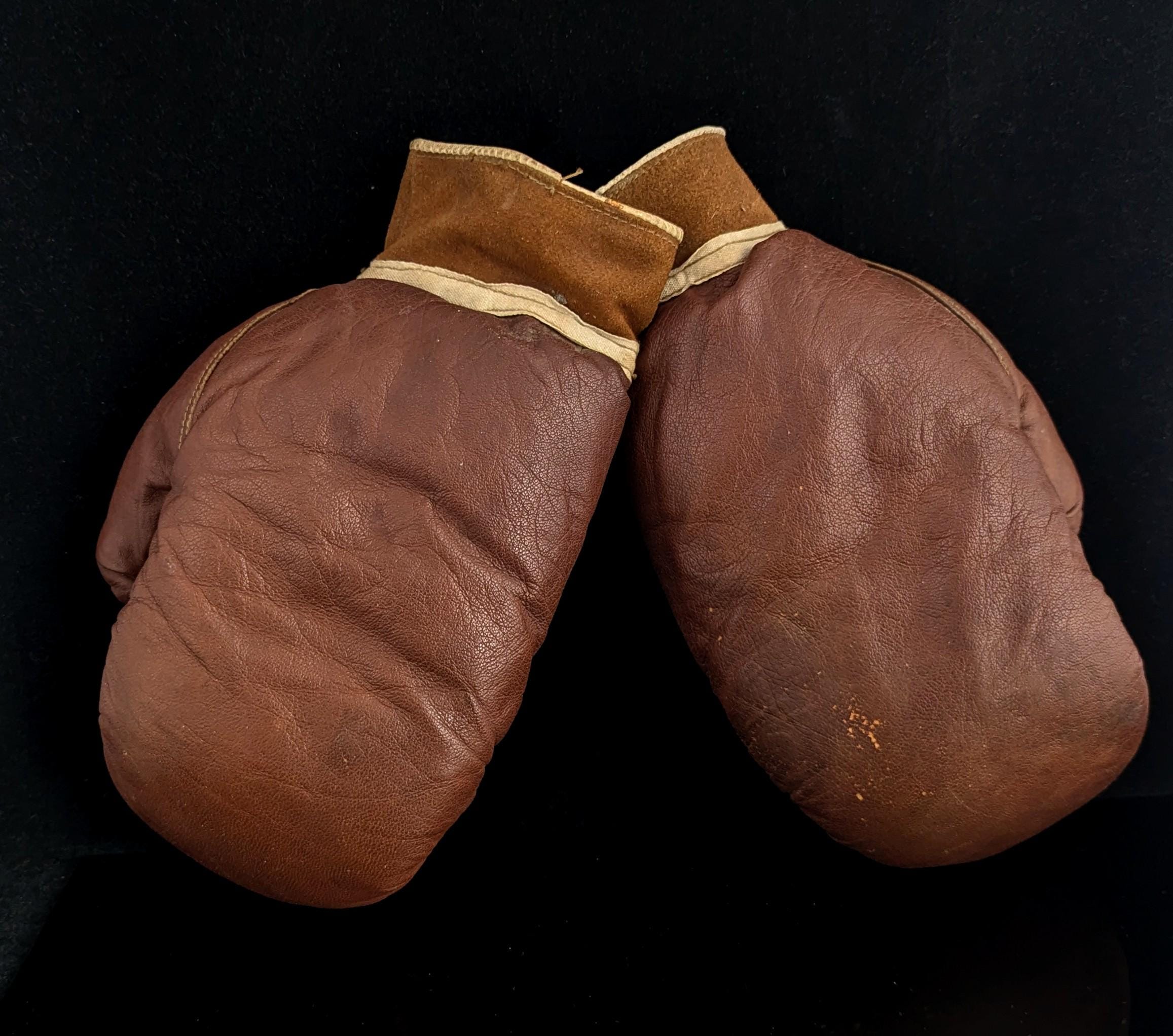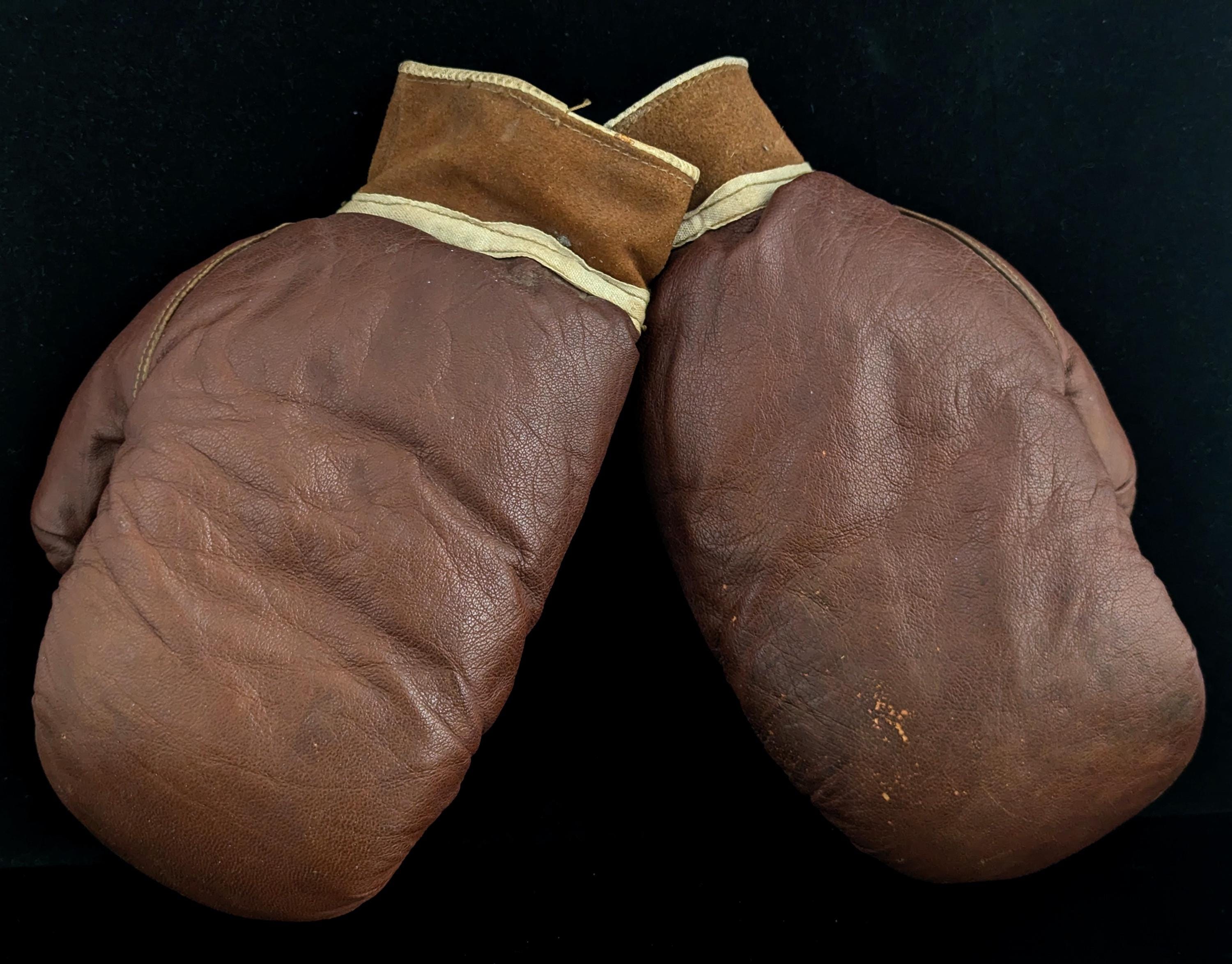 A fantastic pair of rustic antique leather boxing gloves.