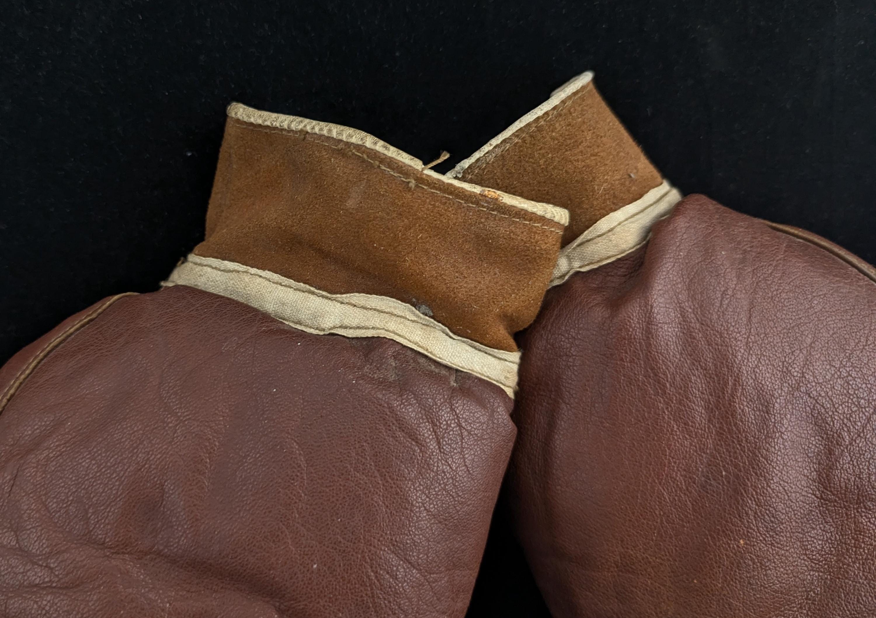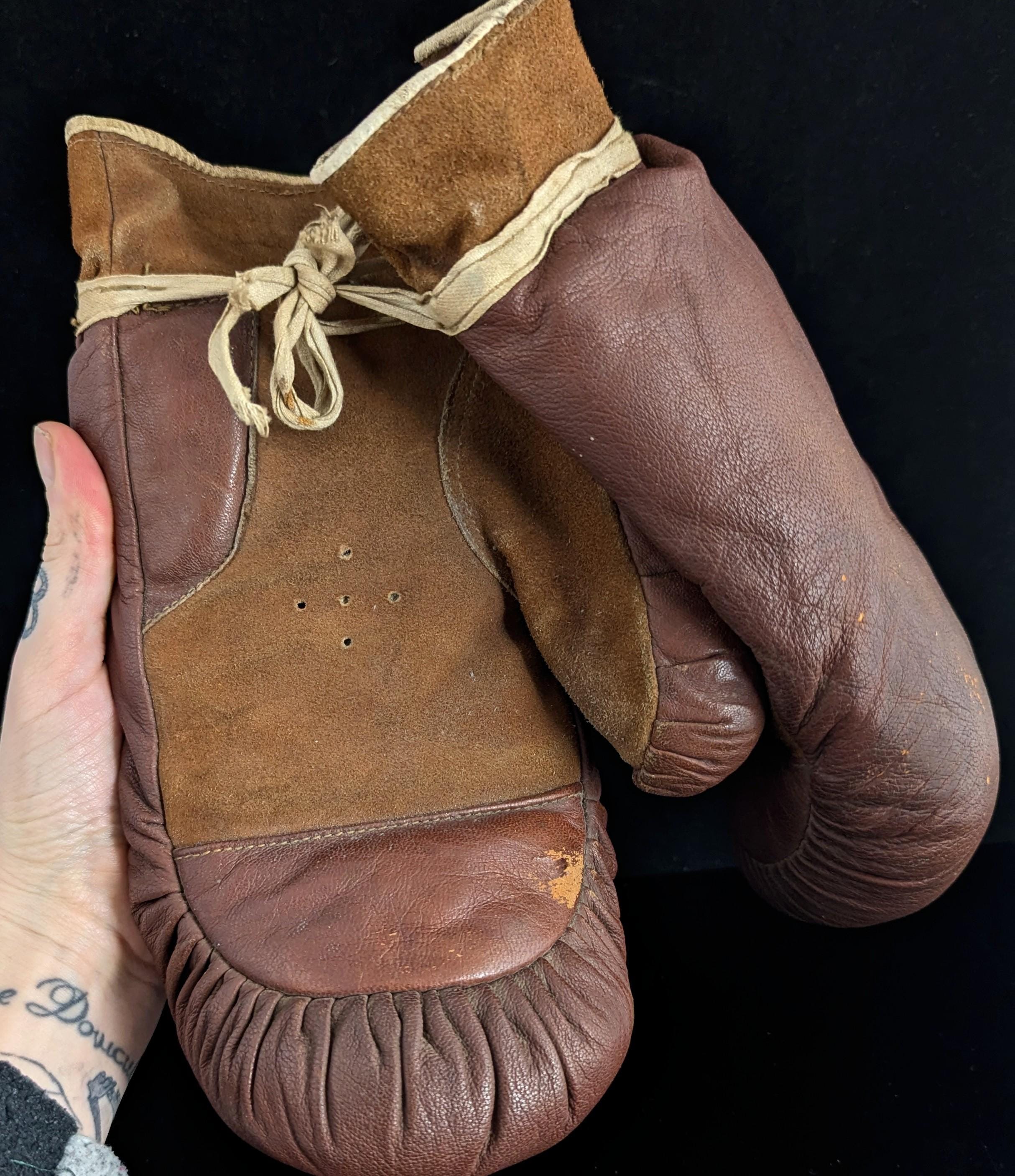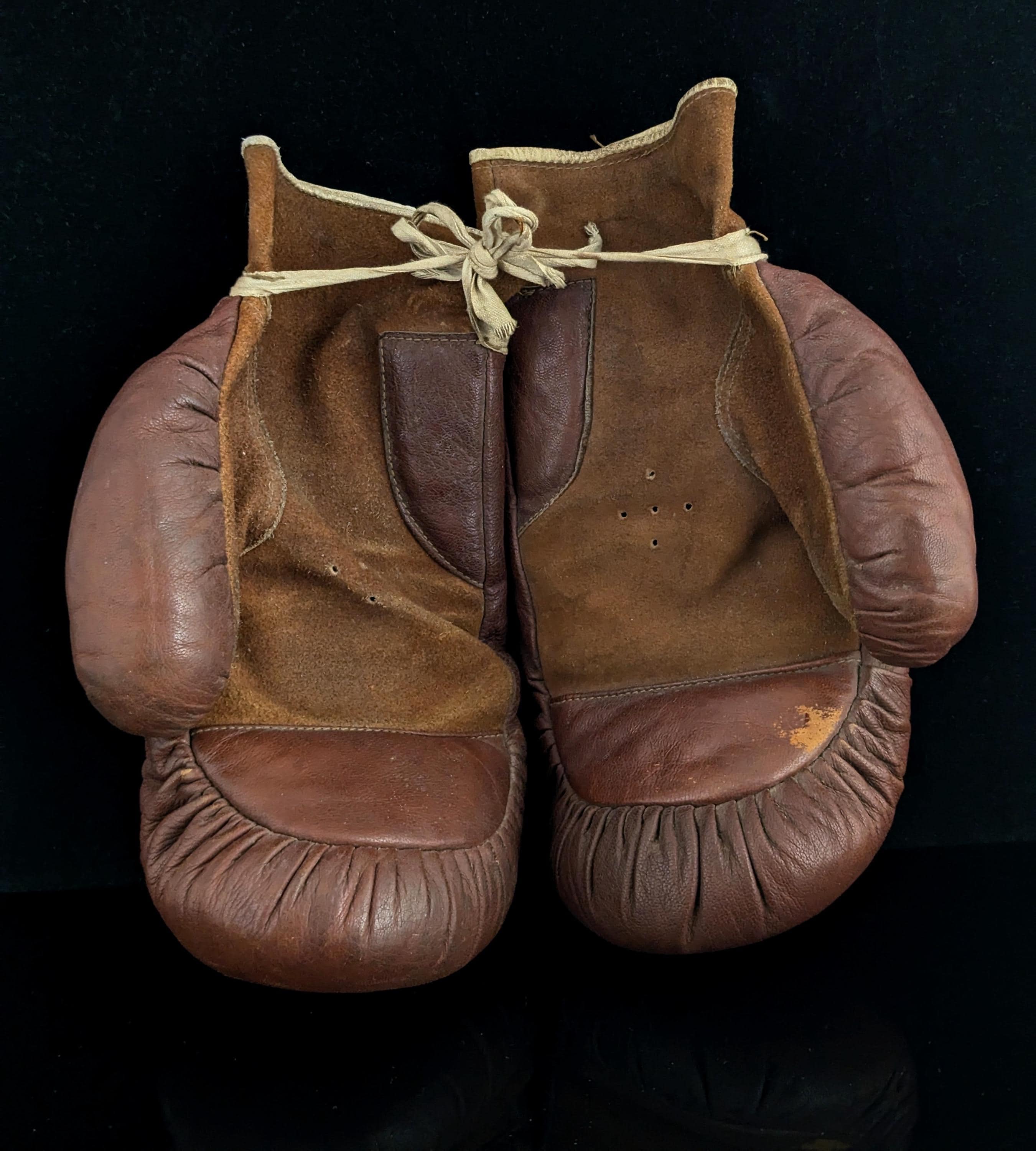A fantastic pair of rustic antique leather boxing gloves.