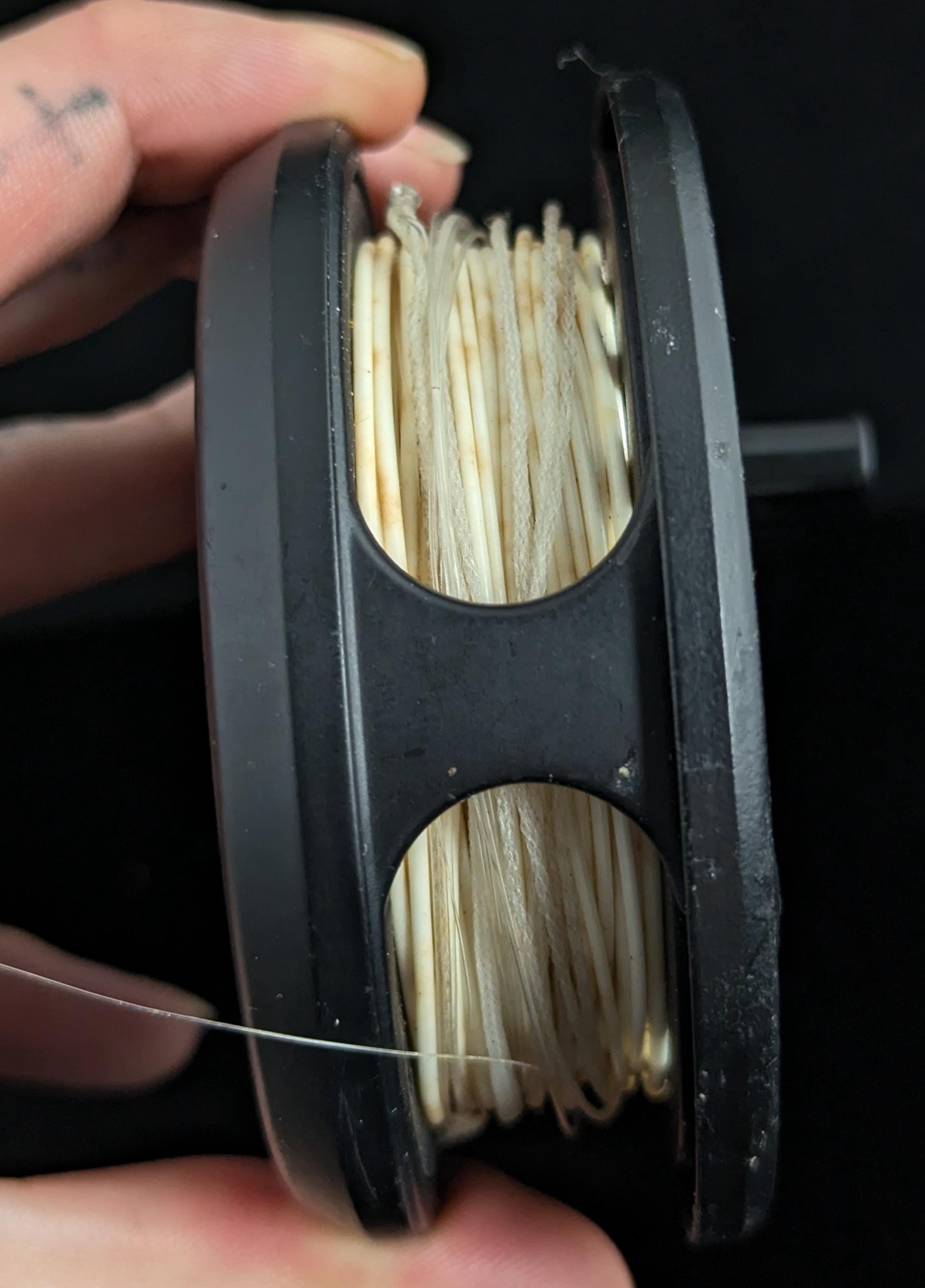 It is marked BFR Rimfly 175, Made in England, still has line on it and it is a heavy duty line