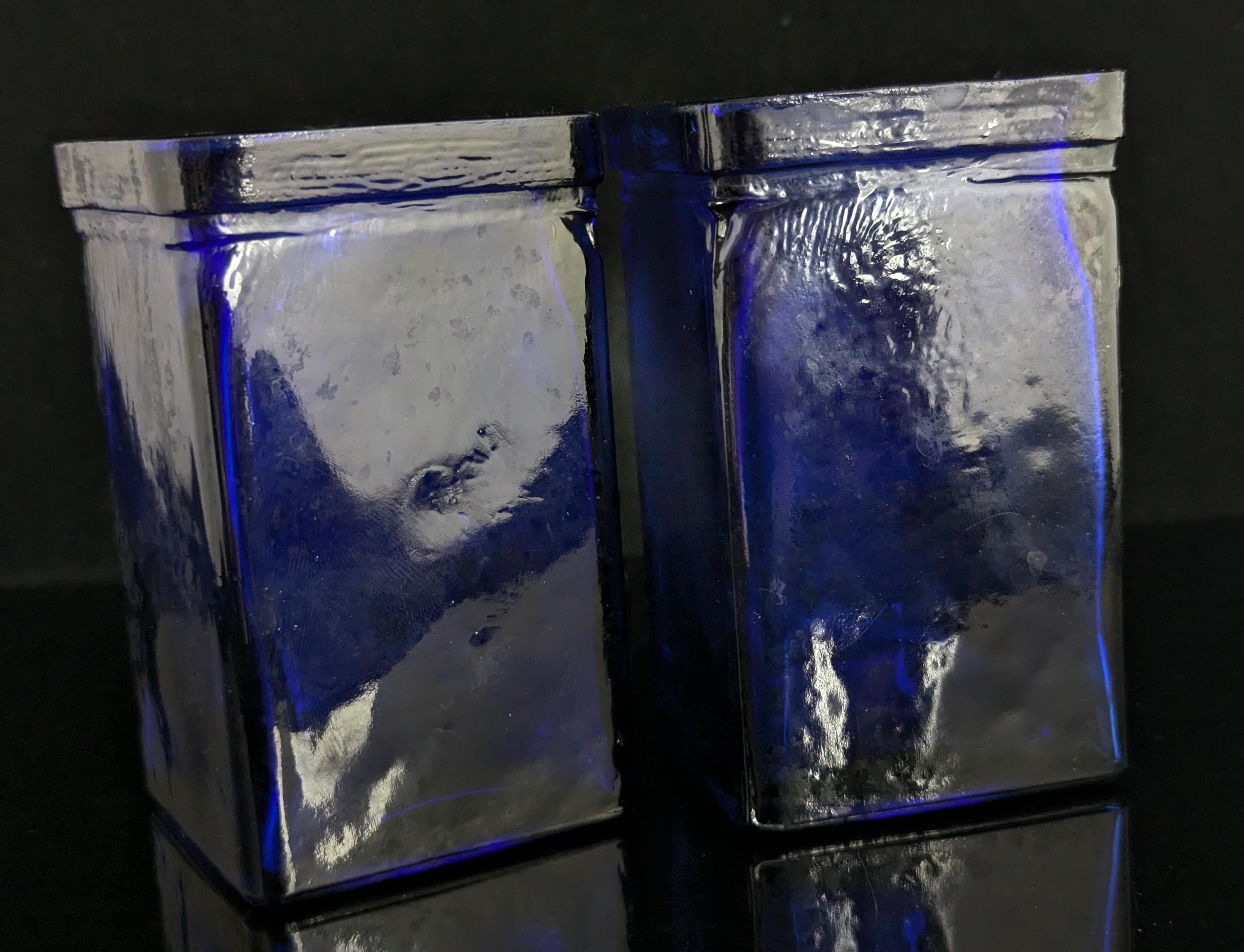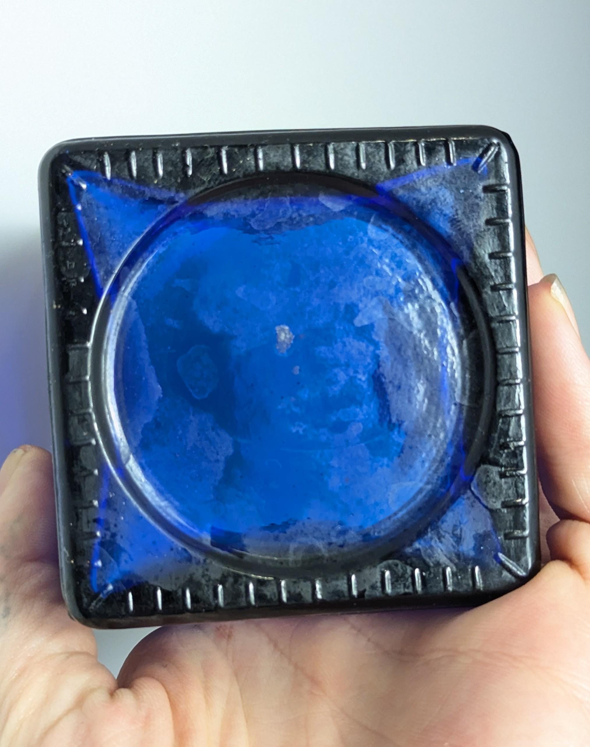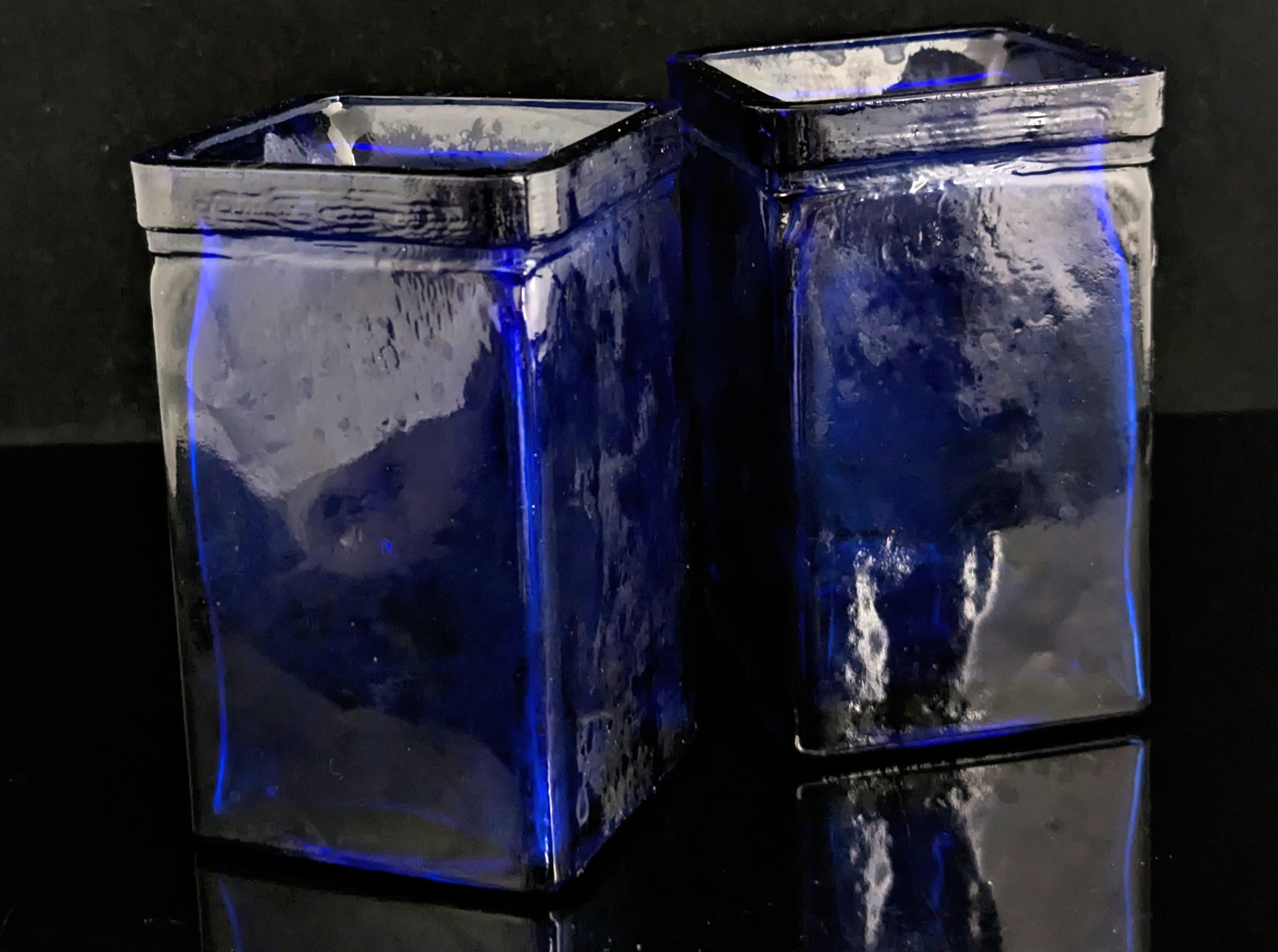 Rich cobalt blue these are mid to late 20th Century and are likely made from recycled glass in Spain, they are a lovely square shape.