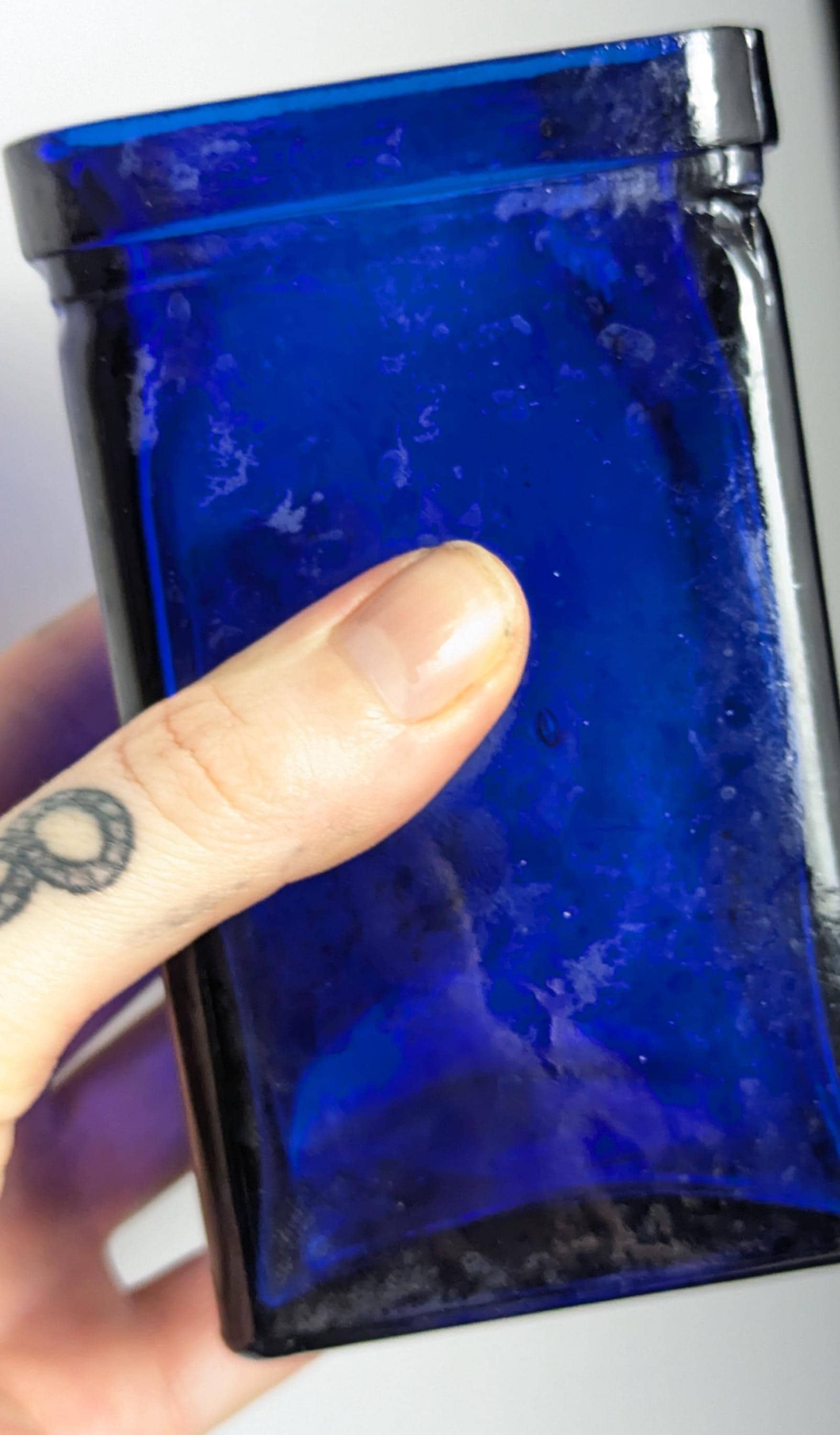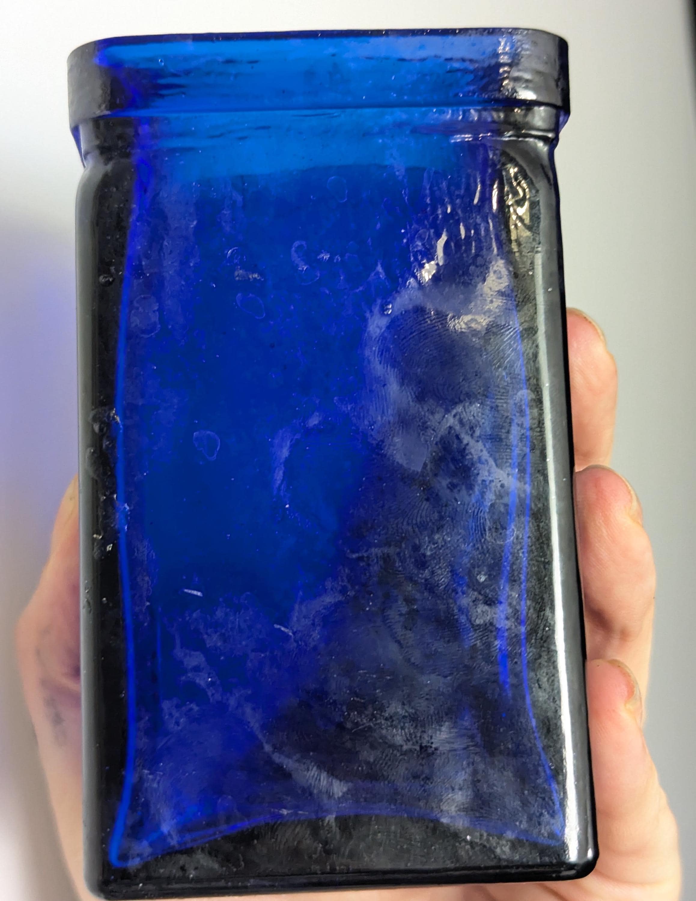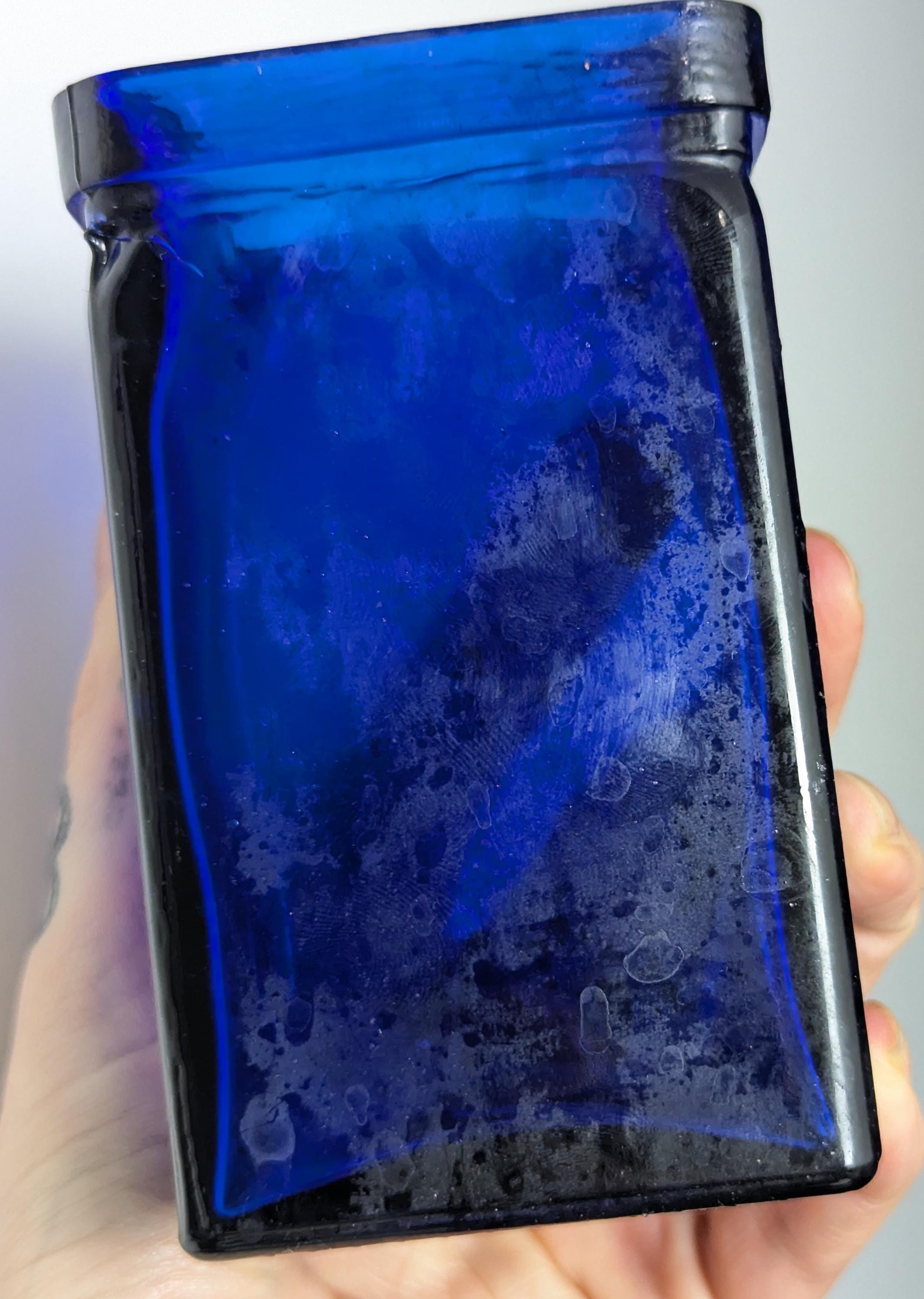 Rich cobalt blue these are mid to late 20th Century and are likely made from recycled glass in Spain, they are a lovely square shape.