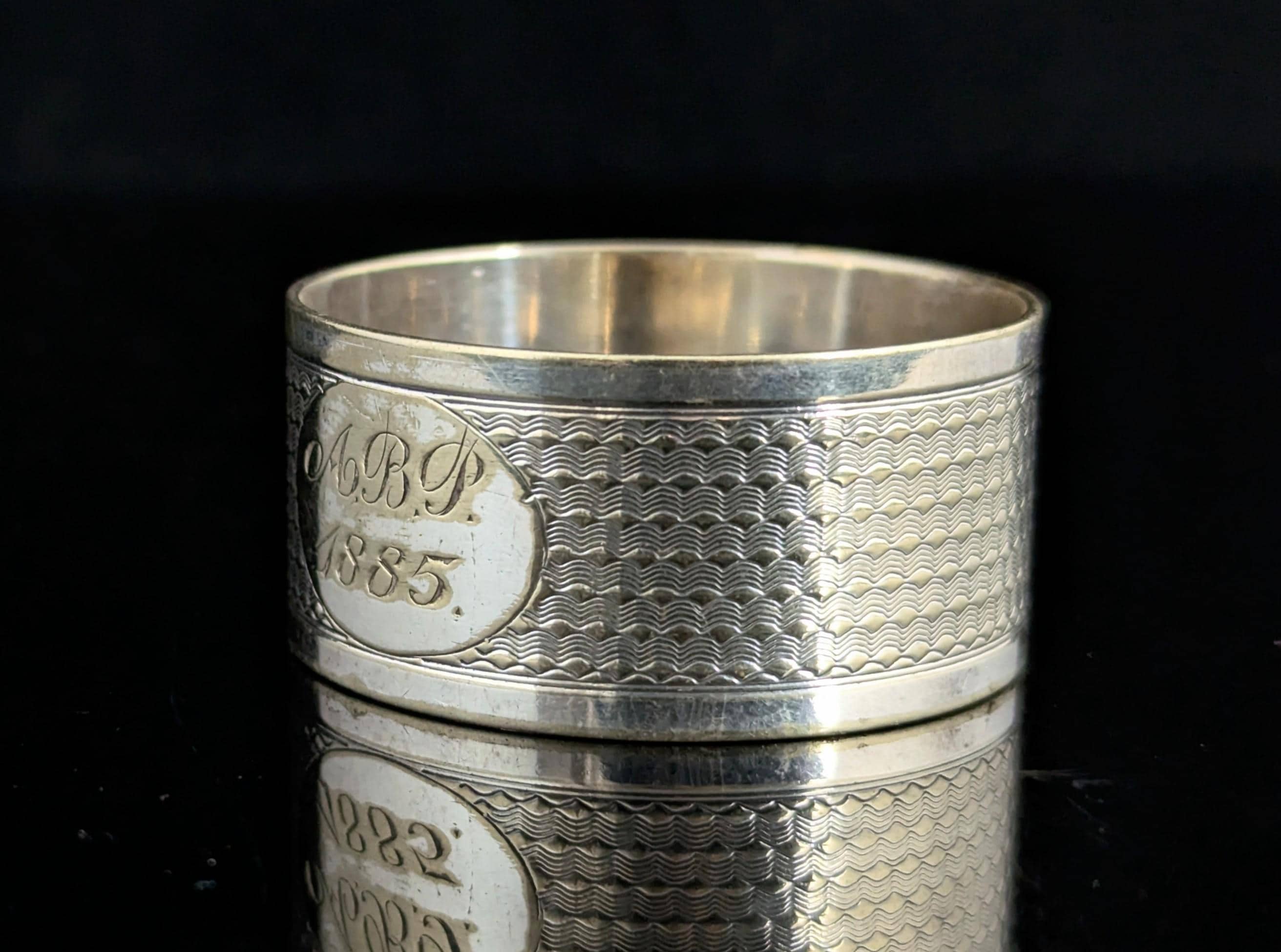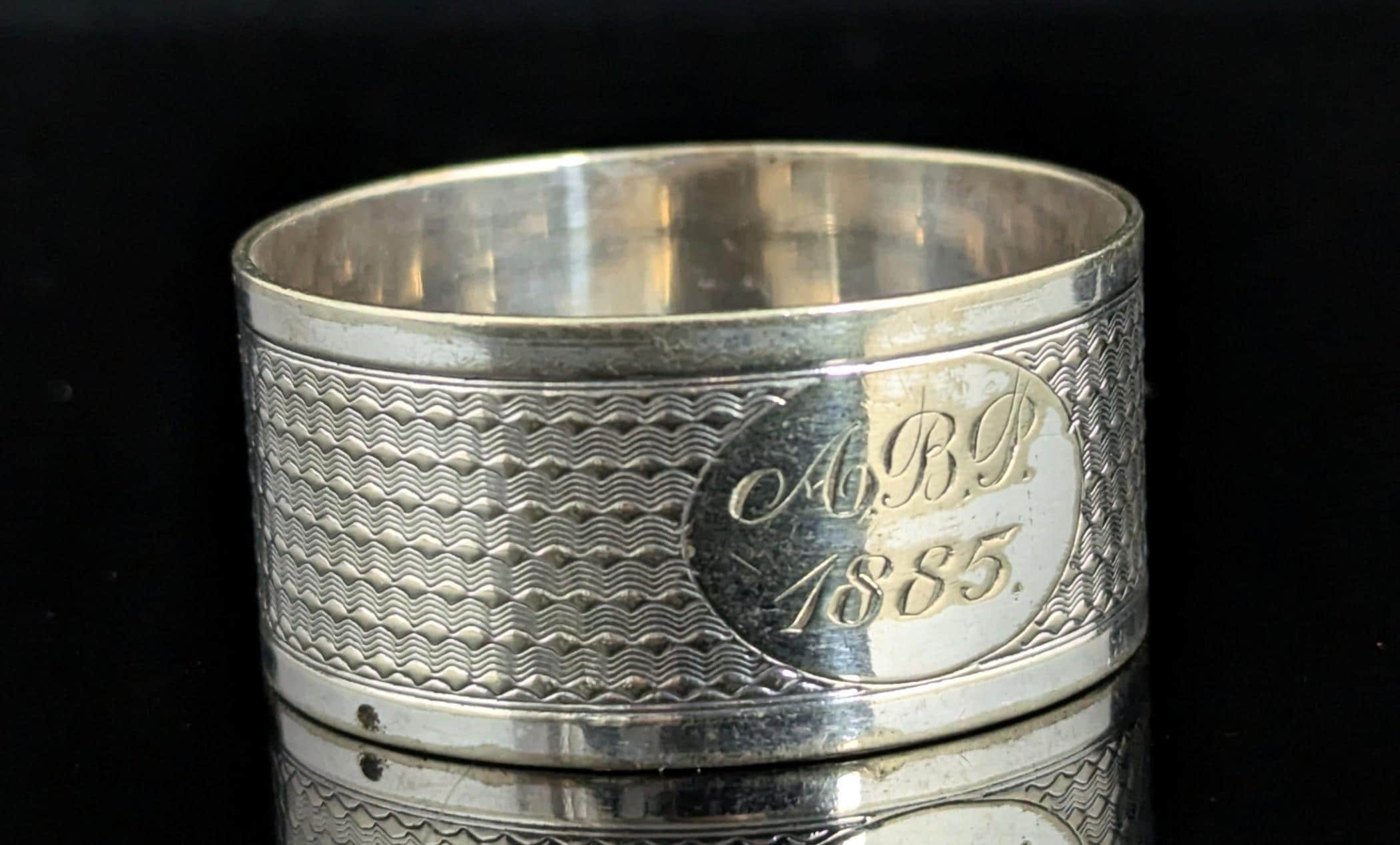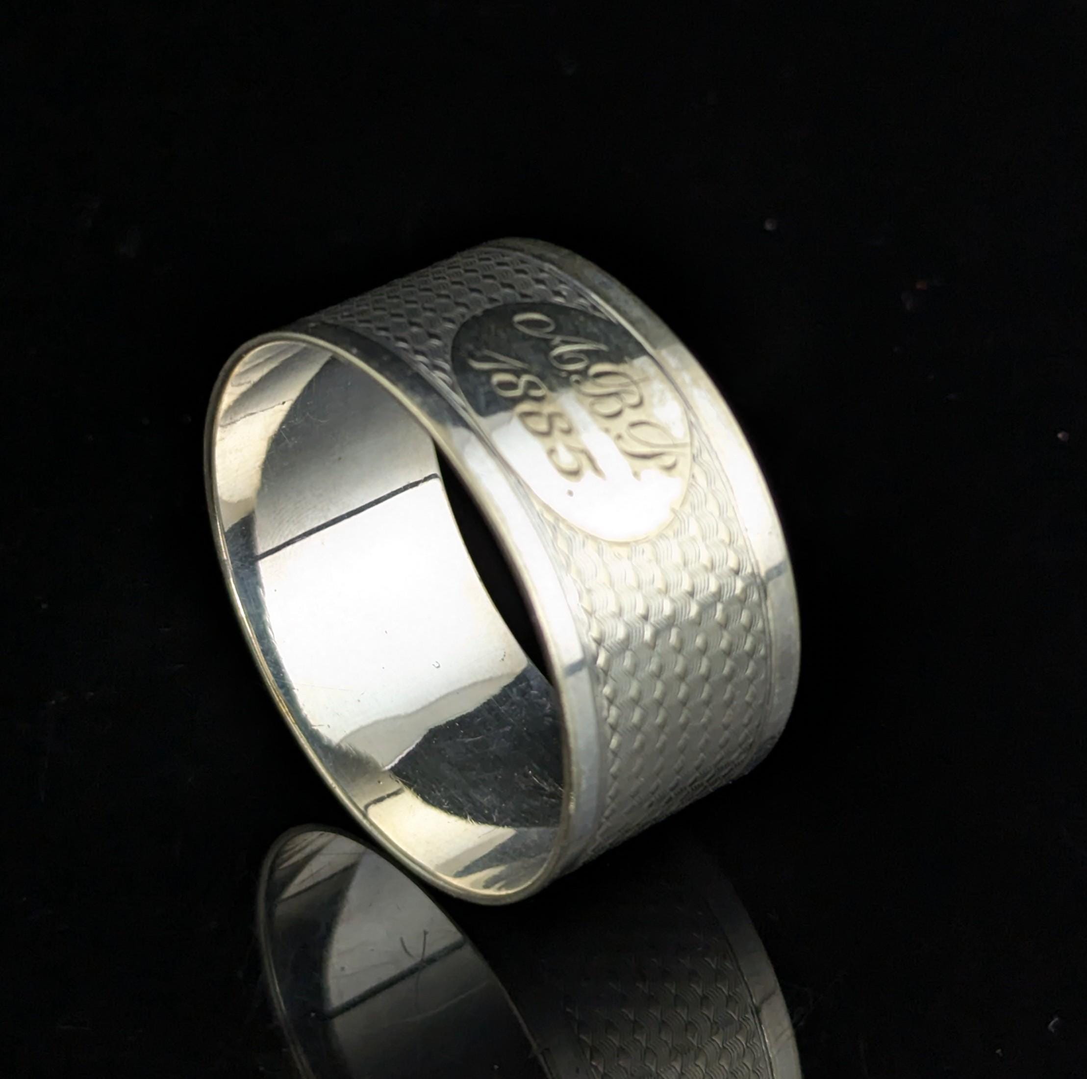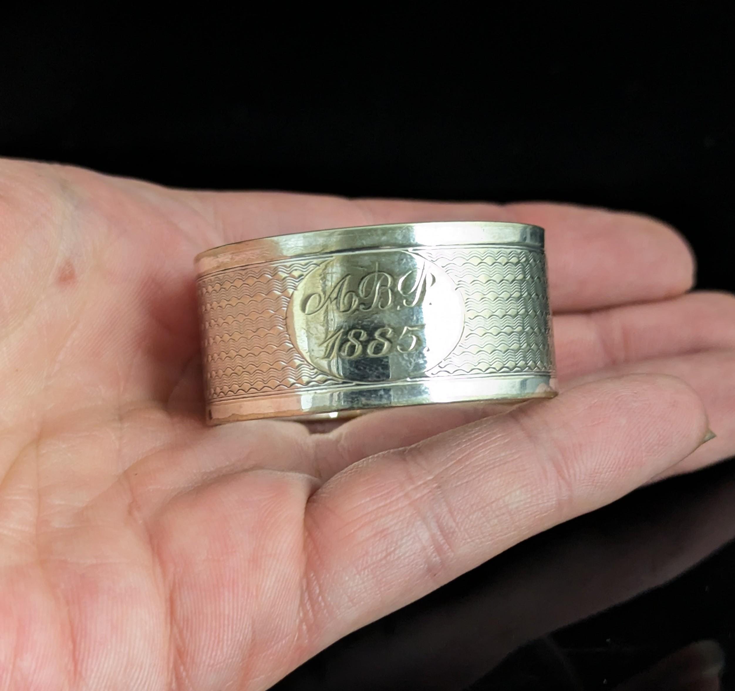 An attractive, rustic, distressed antique Victorian era silver plated napkin ring.